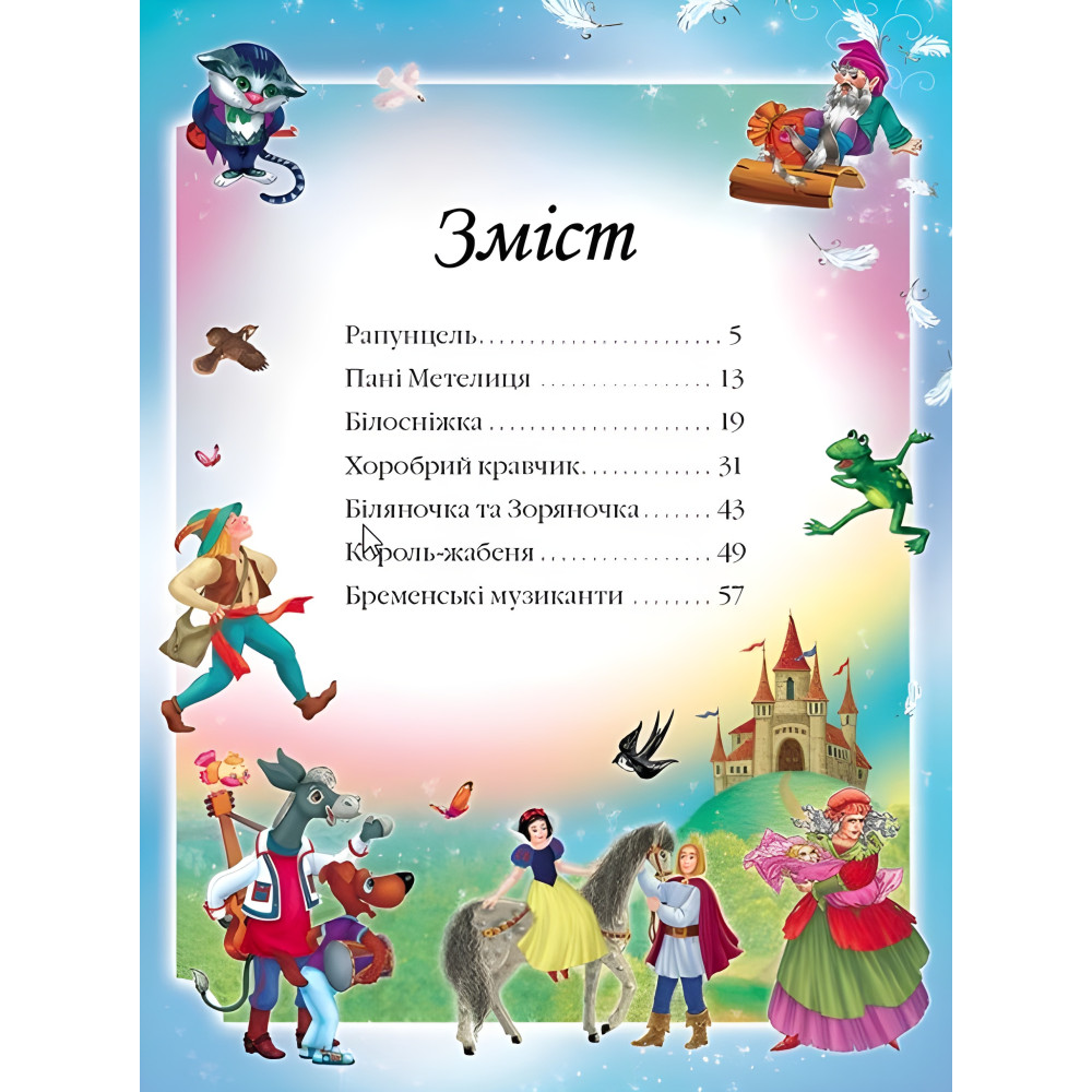 До збірки увійшли кращі казки відомих німецьких письменників - братів Якоба та Вільгельма Грімм. На сторінках цієї книги діти зустрінуться з красунею Рапунцель, Білосніжкою, бременськими музикантами та іншими казковими персонажами, яких читачі різних країн знають і люблять вже протягом двох століть. Для дітей дошкільного та молодшого шкільного віку.