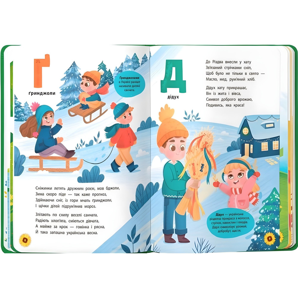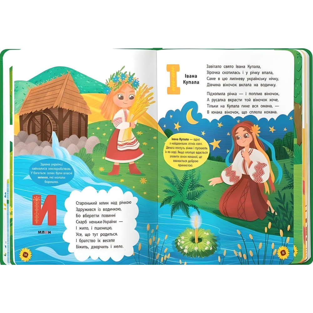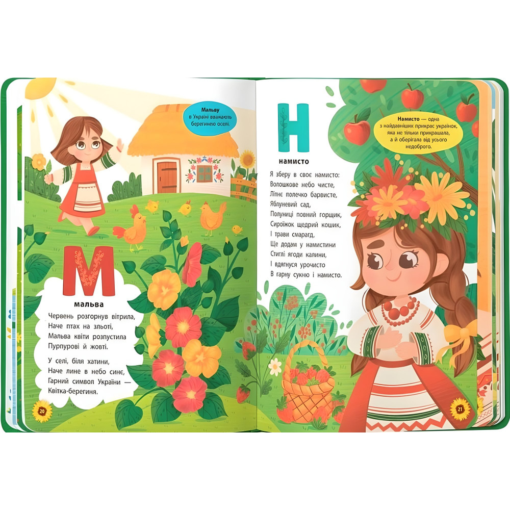 За допомогою цієї книжечки малюк не тільки вивчить алфавіт, а й довідається багато цікавого про нашу Батьківщину. Невеличкі віршики легко запам'ятовуються, а яскраві ілюстрації зроблять навчання веселим та цікавим.