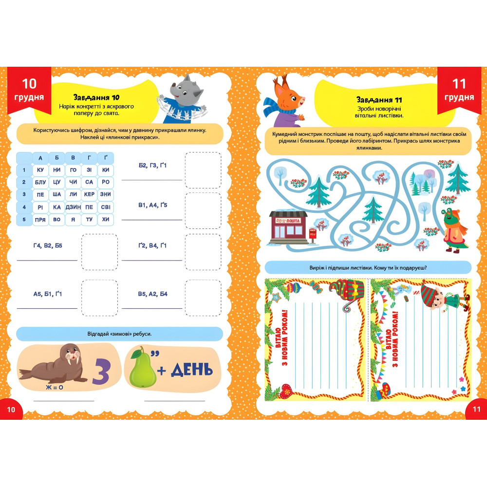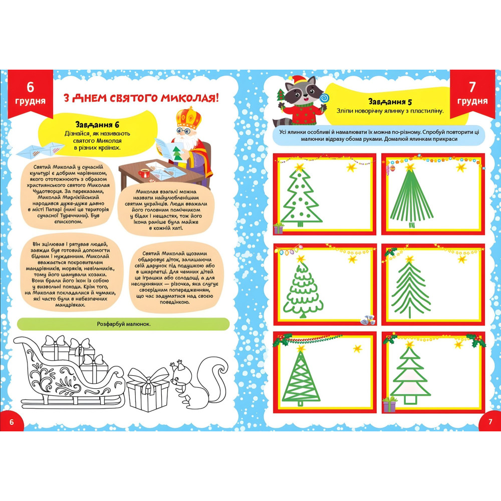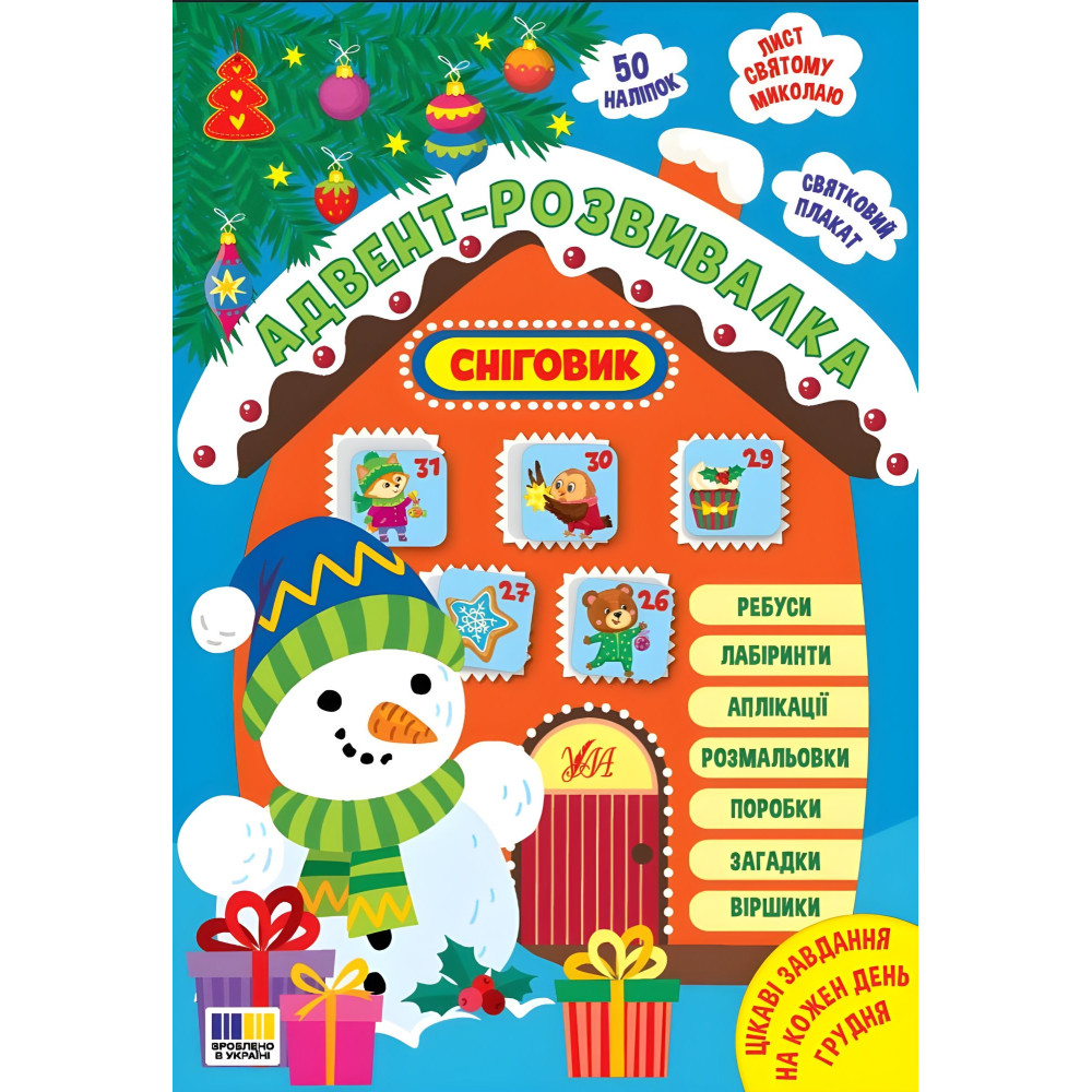 **«Адвент-розвивалка Сніговик»** — це святкова книжка, що перетворює очікування Нового року та Різдва на справжню гру! У ній діти знайдуть **щоденні завдання, наліпки, ігри, розмальовки та творчі вправи**, які допоможуть створити казковий настрій і весело провести час узимку. Разом із кумедним **Сніговиком** малюки вчитимуться рахувати, малювати, фантазувати й пізнавати навколишній світ. Книга чудово підходить для спільних занять батьків і дітей, розвиває увагу, мислення, дрібну моторику та уяву.