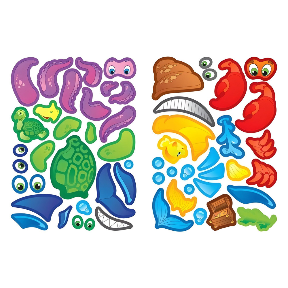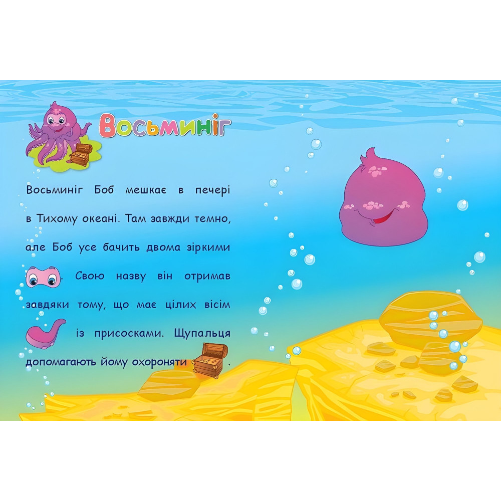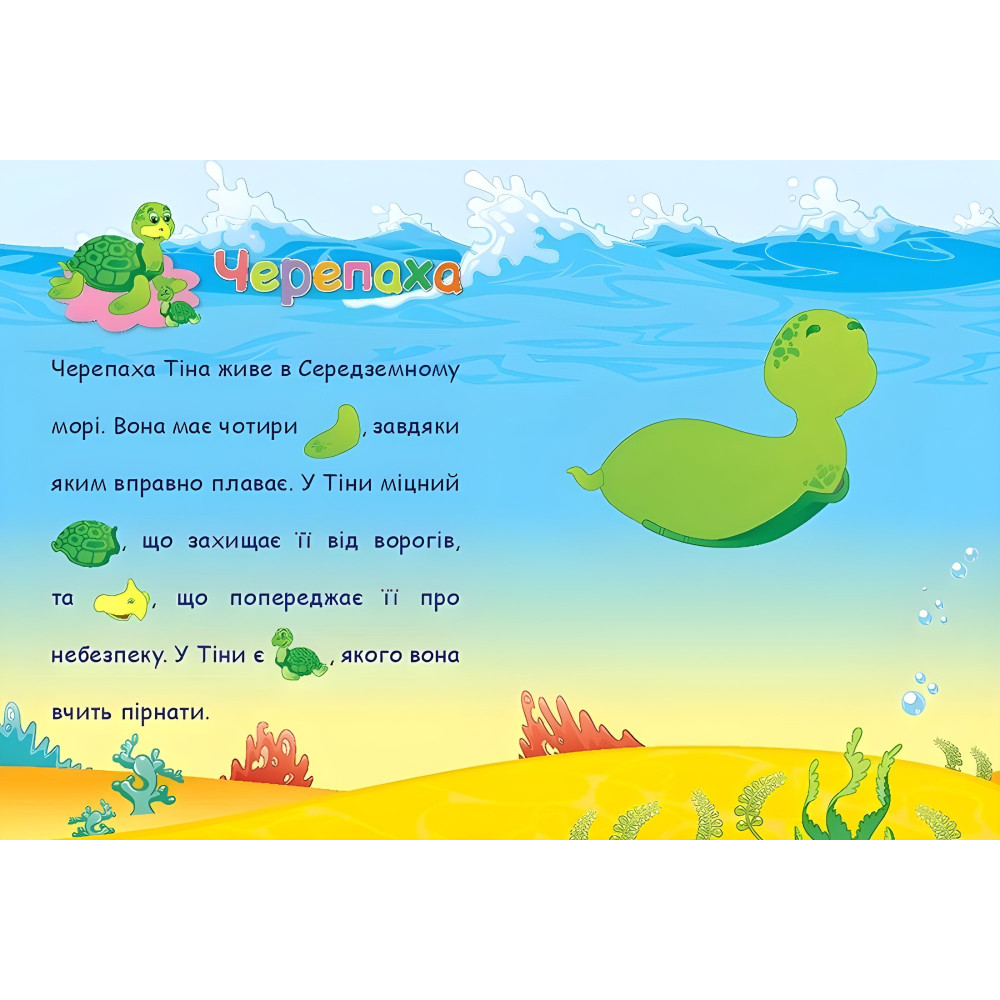 Це видання допоможе організувати захопливе та пізнавальне дозвілля для кожного малюка. Орієнтуючись на зразок, дитина зможе знайті та додати до малюнку частини тіла риб чи морських тварин — плавці, хвостики або щупальця, і зібрати повне зображення. Або створити з наліпок нову, ні на що не сходжу тваринку! Прочитайте разом оповідання про мешканців моря, запропонувавши малюку замінити малюнки словами. Це сприятиме розвитку в дитини фантазії, кмітливості й мовлення, а створення кольорових аплікацій розвине дрібну моторику та навчить співвідносити частину й ціле.