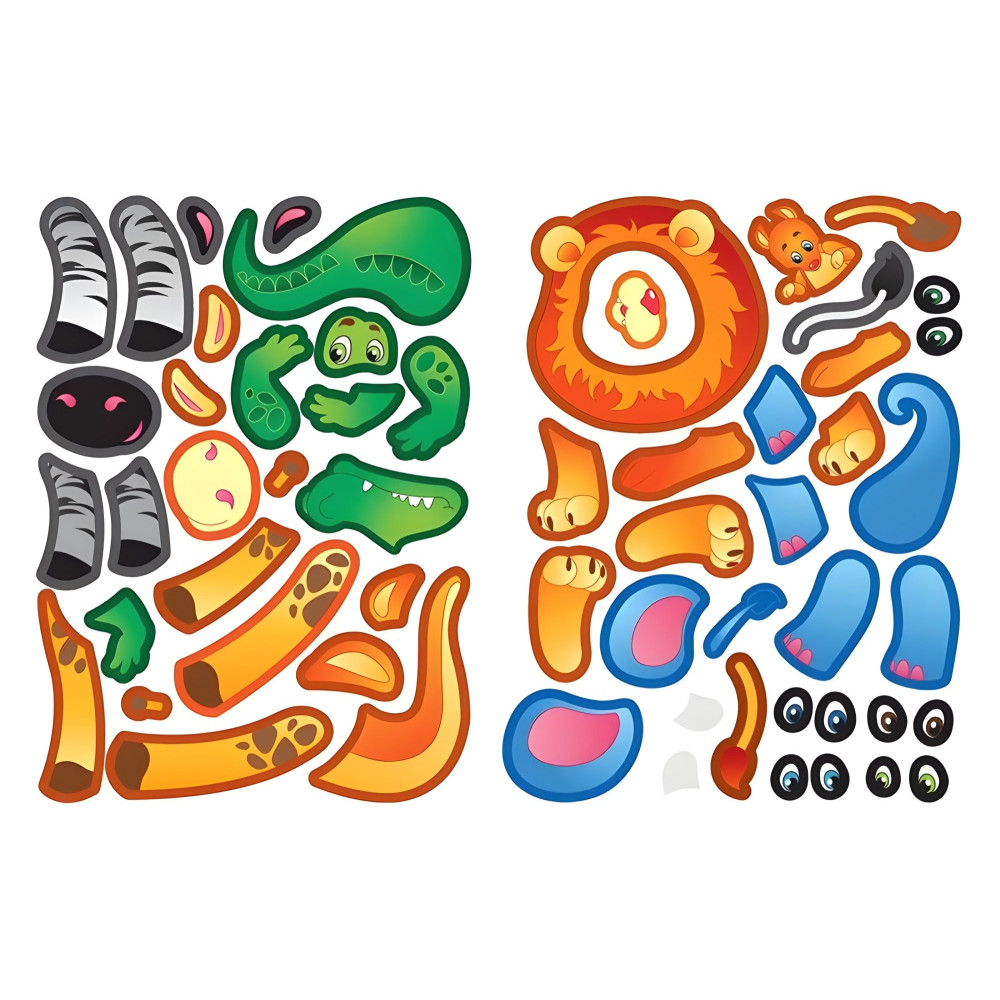 Це видання допоможе організувати захопливе та пізнавальне дозвілля для кожного малюка. Орієнтуючись на зразок, дитина зможе знайти та додати в малюнку частини тіла тварин: хвости, очі або лапи, і зібрати повне зображення. Або створити з наклейок нову, ні на що не схожу тварину! ографія разом розповідь про екзотичних тварин, запропонувавши малюкові замінити малюнки словами. Це сприятиме розвитку в дитини фантазії, кмітливості та мовлення, а створення кольорових аплікацій розвине дрібну моторику та навчить співвідносити частину та ціле.