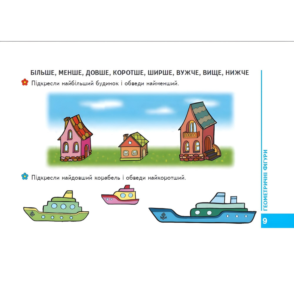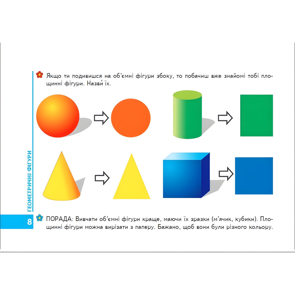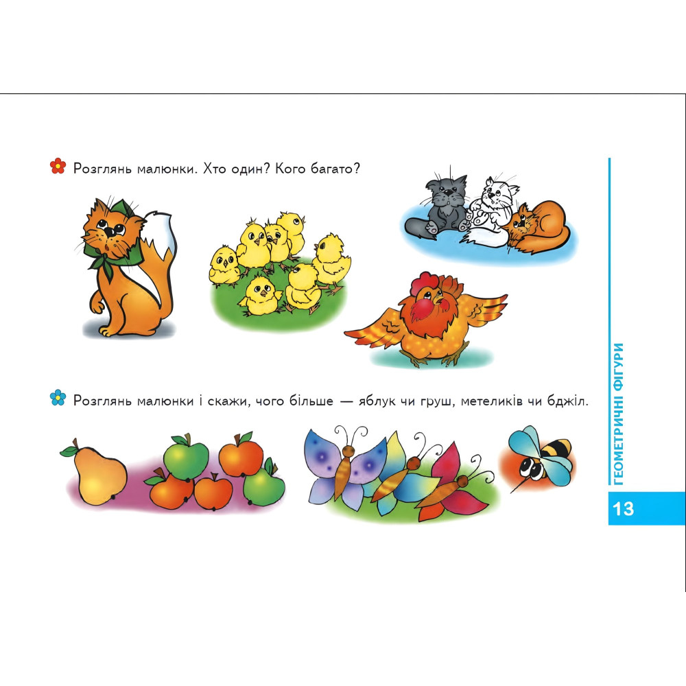 Від видавця:Пропонований матеріал допоможе у доступній, ігровій формі ознайомити малюка з основами математики, поняттями «один-багато», «більше-менше», «стільки ж», деякими площинними та об'єднання ємними фігурами. Основну увагу приділено цифрам та числам, кількісному і порядковому їх значенню, роботі з математичними знаками, розв'язків язанню прикладів та задач.Зручний невеликий формат дає можливість брати посібник з собою в дорогу чи на відпочинок, займатися за ним на прогулянці.