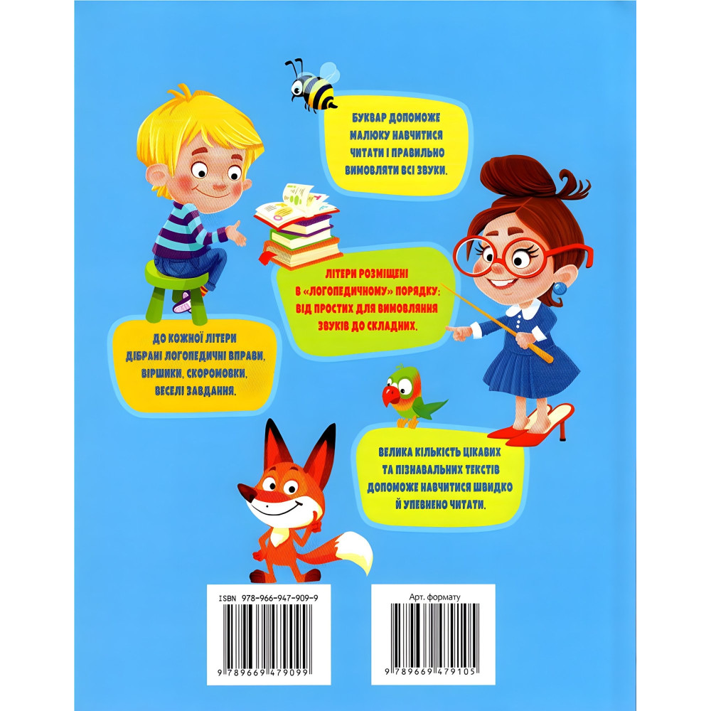 Для впевненого спілкування та успішного навчання дитині потрібна чітка та правильна вимова звуків. Як цього досягти? Звичаино, за допомогою веселих зайняти. У букварі до кожної літерки дібрано логопедичні вправи, веселі віршики, скоромовки, чистомовки, шуканки, лабіринти та багато іншого. Літери в цій книжці розміщено в певному порядку, який дозволить навчатися від простого до складного. Малюк правильно вимовлятиме звуки окремо та у словах, легко й невимушено вивчить літери української абетки. А велика кількість цікавих та пізнавальних текстів допоможе навчитися швидко читати. Майбутньому школярикові сподобається навчатися граючись!