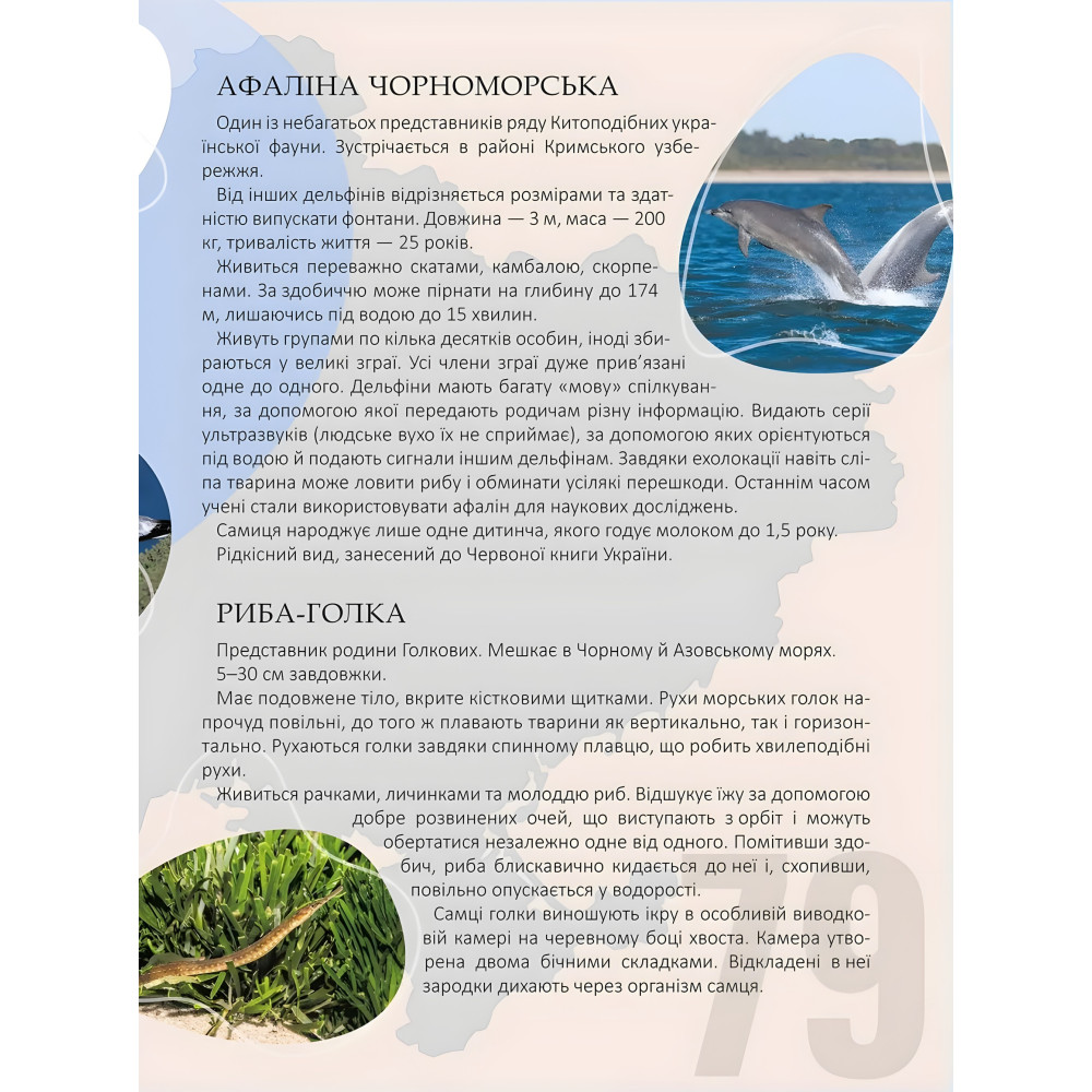 Наша чудова країна славиться дивовижним ландшафтом і неповторною природою. Перлина краси України — її флора та фауна. З нашої книги ви дізнаєтесь, які тварини населяють Карпати, ліси Полісся та субтропіки Південного берега Криму, які рослини використовують лікарі, чому деякі жаби пахнуть часником, чи існують насправді рослина-штопор і земляний заєць. Кожна сторінка — це захоплива подорож у світ цікавинок.