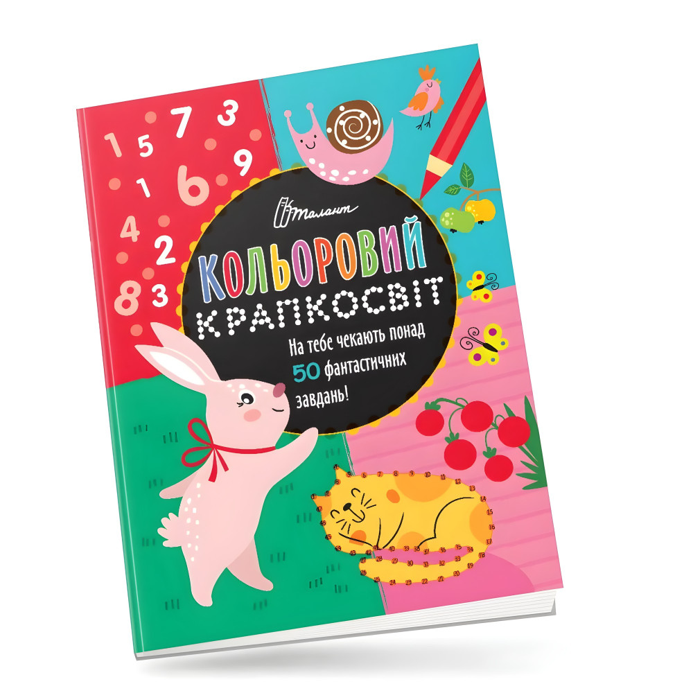 Приготуйся до пригодницьких історій та неймовірних розваг! Досліджуй «Кольоровий крапкосвіт». На тебе чекають безліч фантастичних завдань. З’єднуй крапочки та дізнайся, хто сховався на сторінках цієї дивовижної книжки.