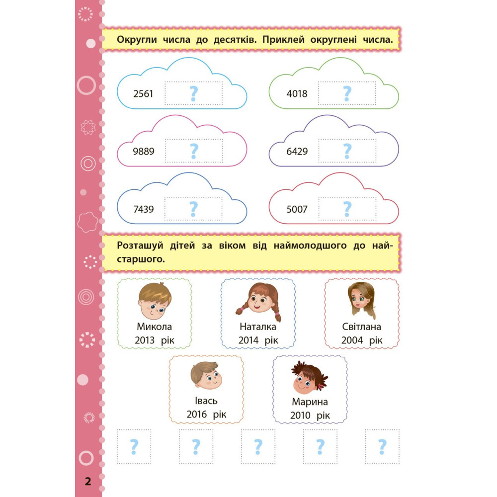 Видання охоплює матеріал 4 класу з предмета «Математика» і відповідає вимогам освітніх програм математичної галузі Нової української школи. Ігрова форма завдань, 100 наліпок і яскраві ілюстрації допоможуть легко сформувати ключові компетентності дитини та закріпити набуті в школі знання.