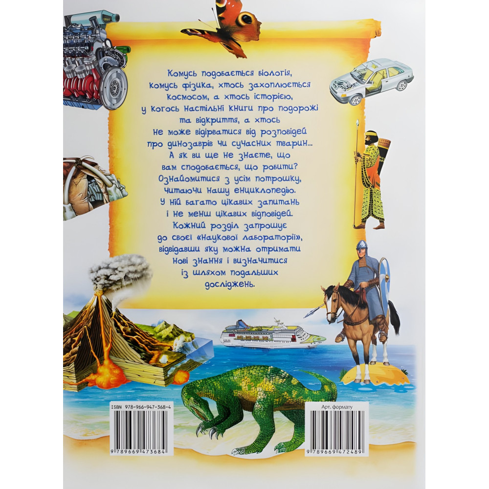 Які тими відображені в «Ілюстрованої дитячої енциклопедії в запитаннях і відповідях» із серії «Подарункова енциклопедія»?Комусь подобається біологія, комусь фізика,хтось захоплюється Космосом, а хтось історією,У когось настільні книги про подорожі та відкриття,а хтось не може відірватися від розповідей про динозаврів чі сучасних тварин...А як ві ще не знаєте, що вам сподобається, що робити? Ознайомитися з усім потрошку, читаючи велику «Ілюстровану дитячу енциклопедію».