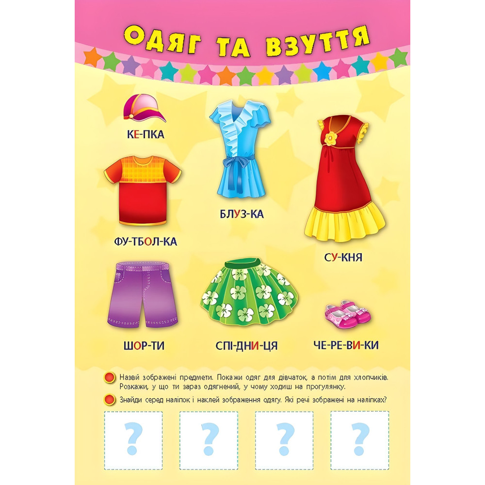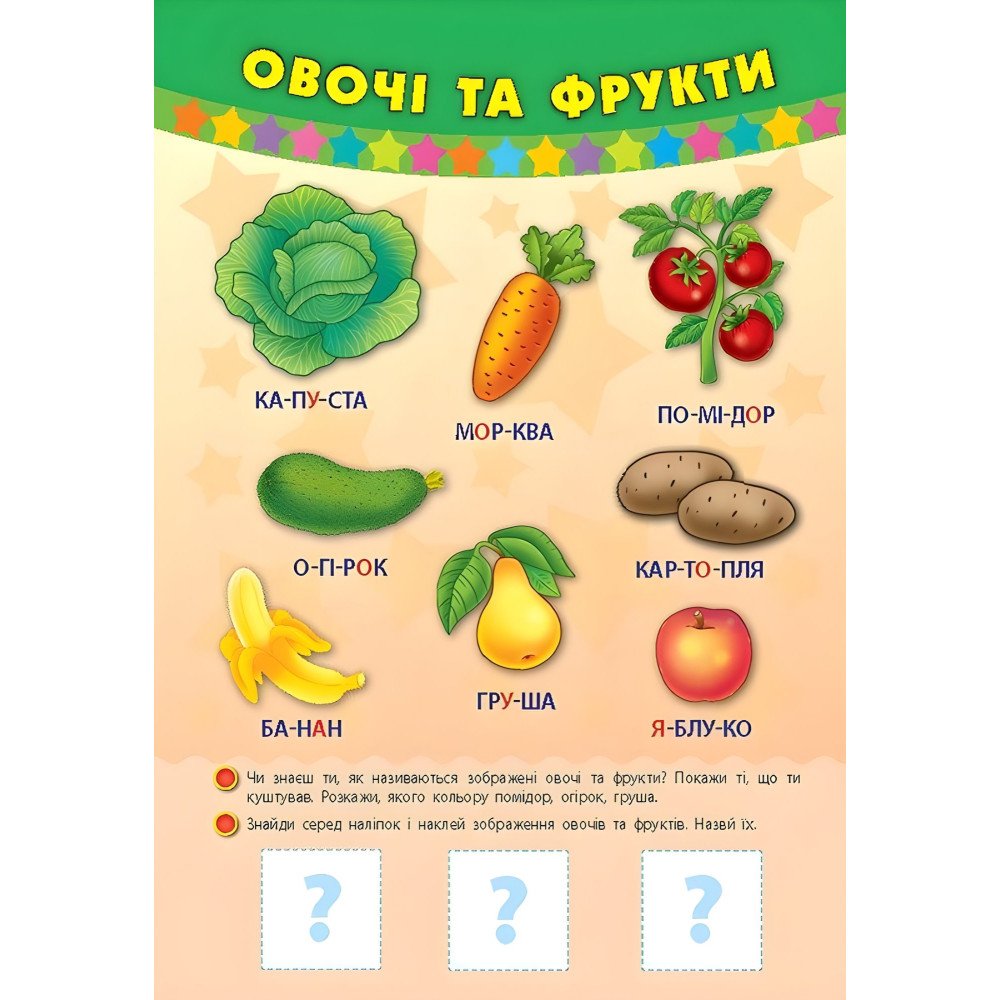 Книги серії «Ітерактивні наочні плакати» являють собою тематичні плакати, які можна повісити на стіну, двері або шафу. До кожної базової теми представлені малюнки з назвами, розділеними на склади, що сприяють оволодінню мовними навичками; цікаві завдання, спрямовані на закріплення та заглиблення знань і наклейки, які допоможуть виконати завдання, одночасно розвиваючи увагу, кмітливість і дрібну моторику.