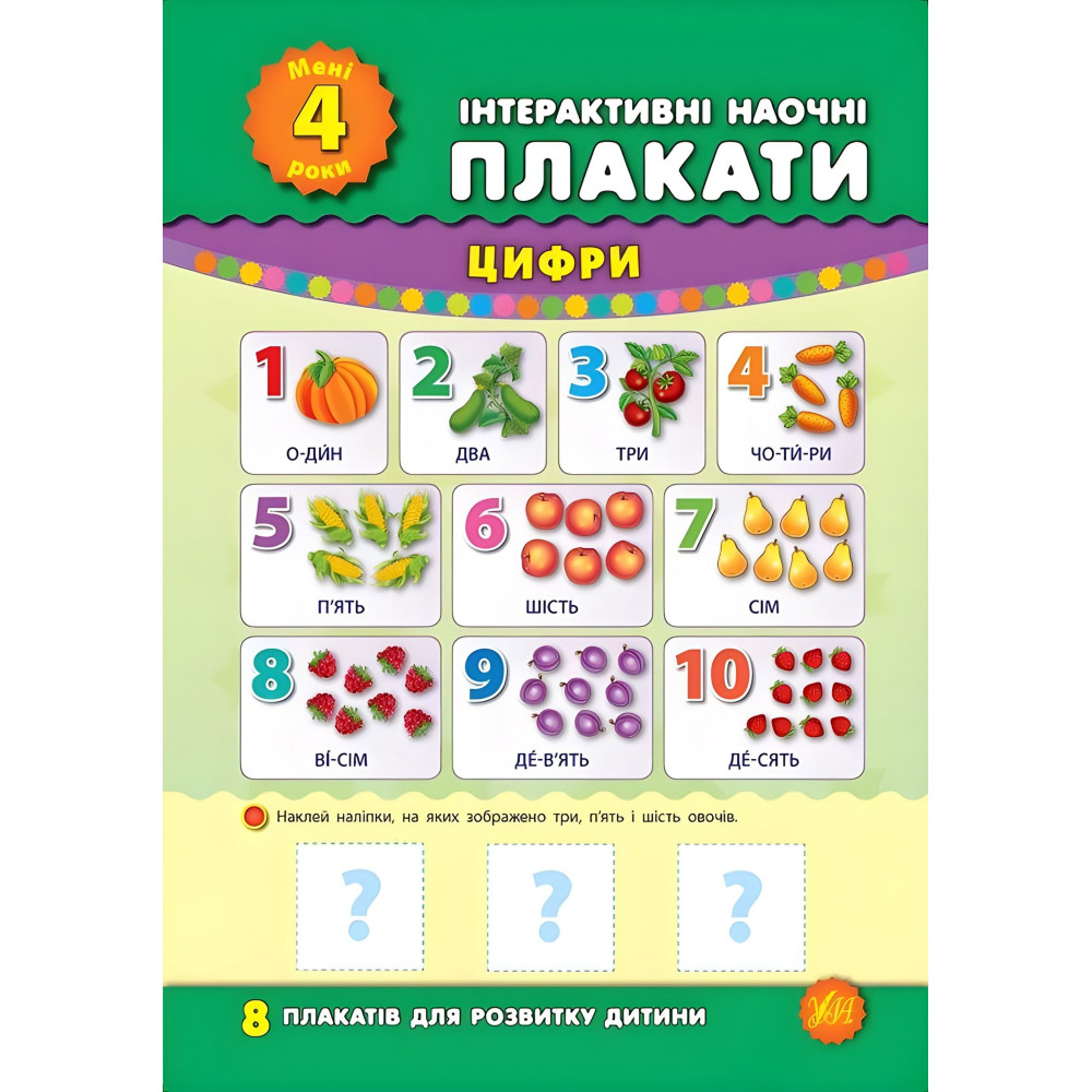 Книги серії «Ітерактивні наочні плакати» являють собою тематичні плакати, які можна повісити на стіну, двері або шафу. До кожної базової теми представлені малюнки з назвами, розділеними на склади, що сприяють оволодінню мовними навичками; цікаві завдання, спрямовані на закріплення та заглиблення знань і наклейки, які допоможуть виконати завдання, одночасно розвиваючи увагу, кмітливість і дрібну моторику.