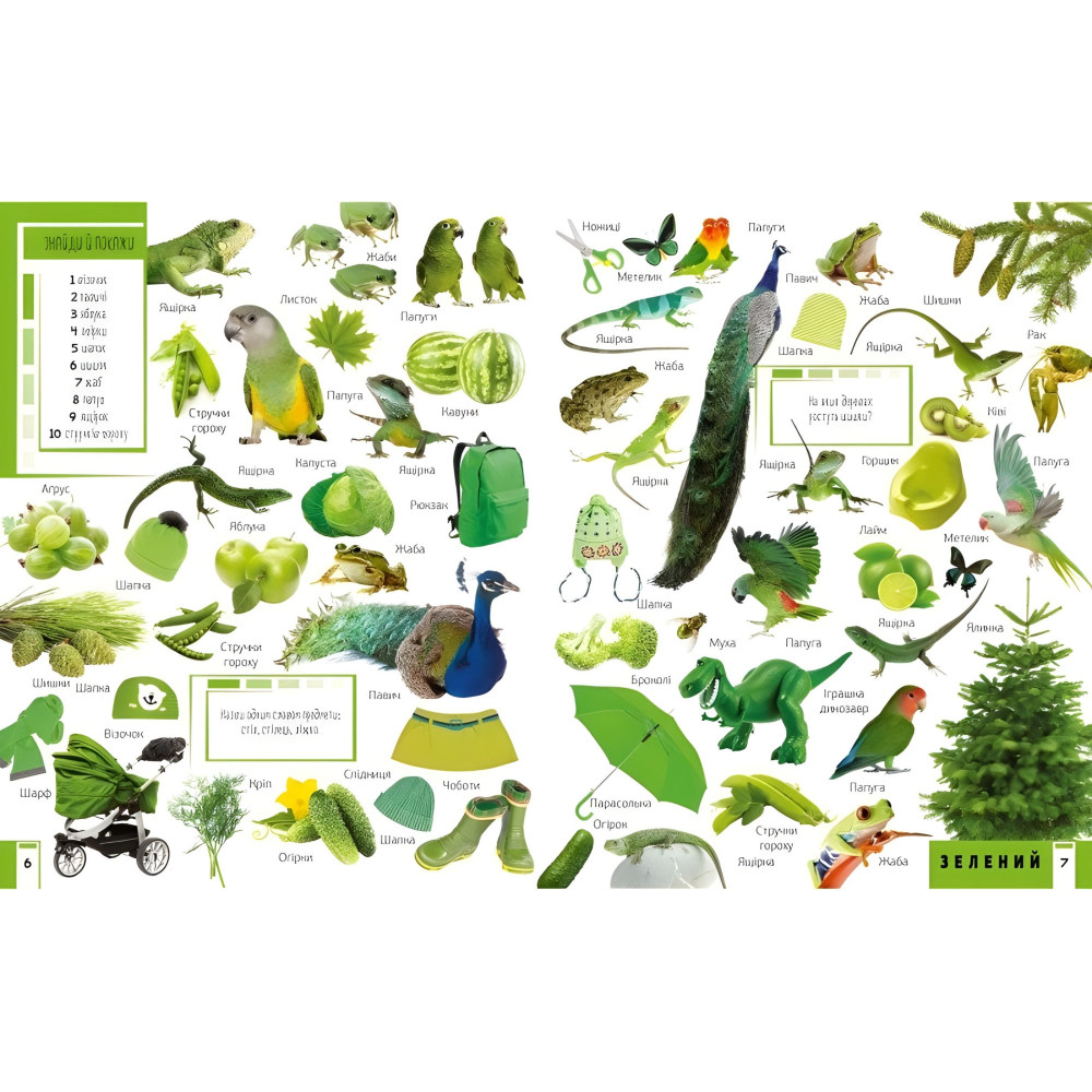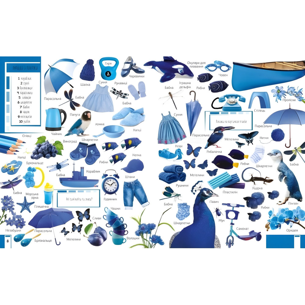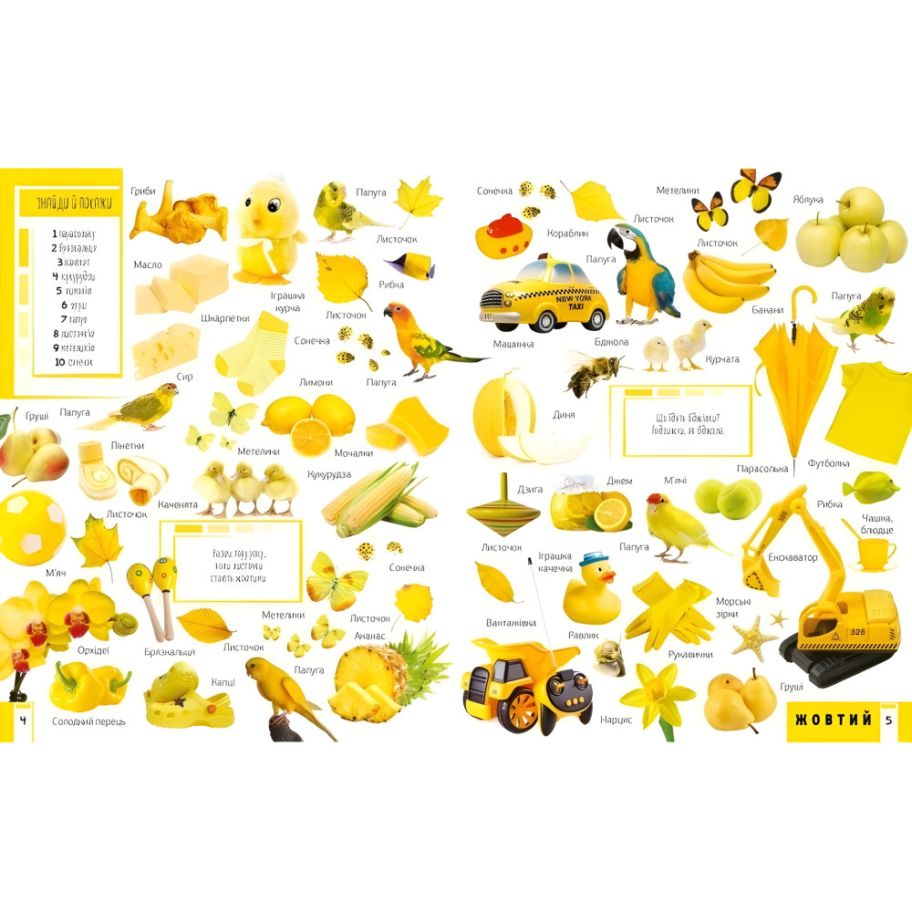 Ви тримаєте в руках унiкальну книжку, яка познайомить ваше маля з основними кольорами. Яскравi картинки зможуть утримати увагу маленького читача й сприятимуть розвитку його уяви.Малюк навчиться розпiзнаватий називати предмети, тварин, рослини,а також опанує лiчбу до десяти,Адже на кожному розворотi завдання знайти й показати певну кiлькiсть предметiв.