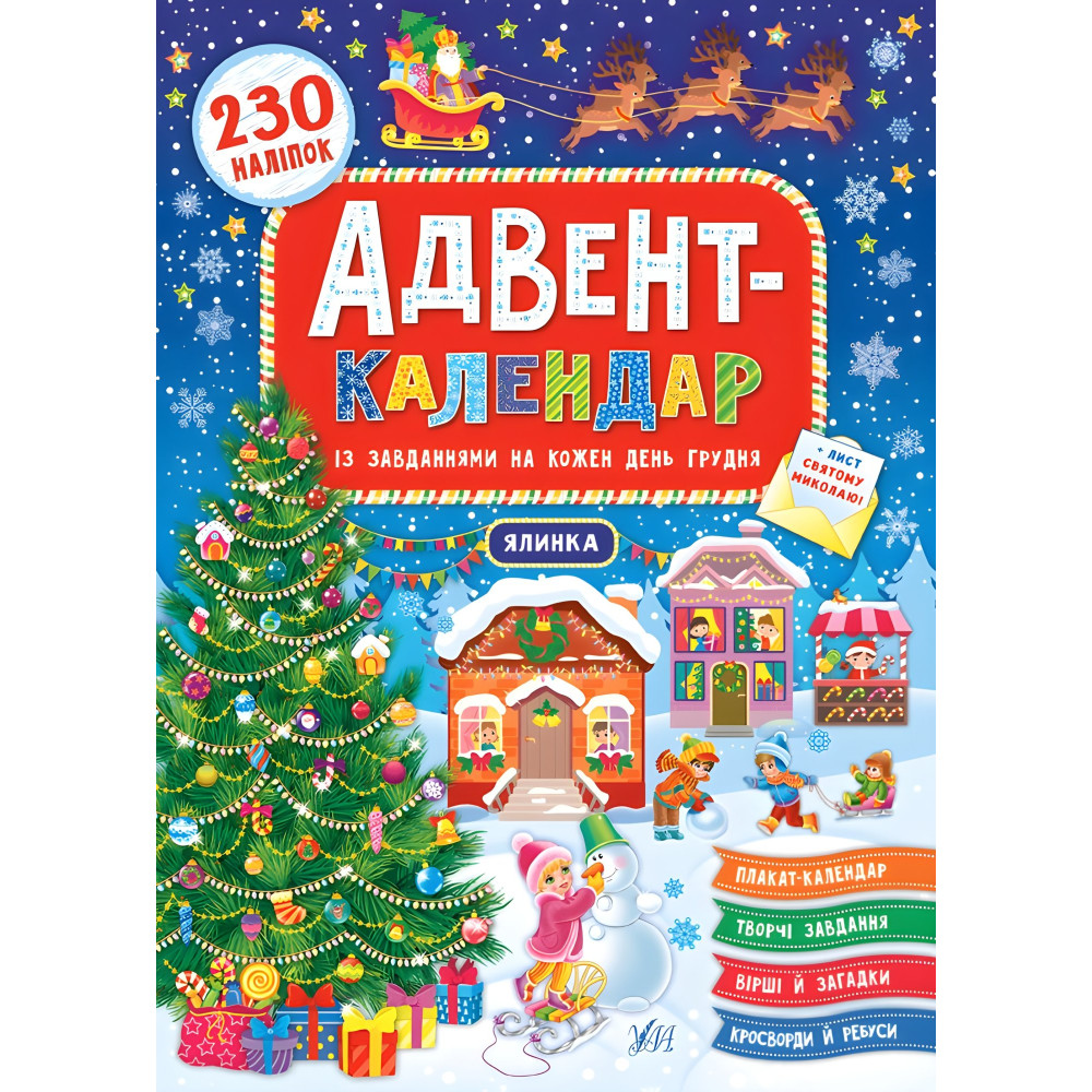 Разом із цією книжкою малюк підготується до зимових свят та проведення годину в очікуванні Нового року цікаво та з користю. Видання містить великий плакат-календар на грудень, творчі й розвивальні завдання на кожен день місяця, 230 яскравих наліпок для виконання завдань і заповнення календаря, а також лист святому Миколаю та лист для планів на наступний рік.