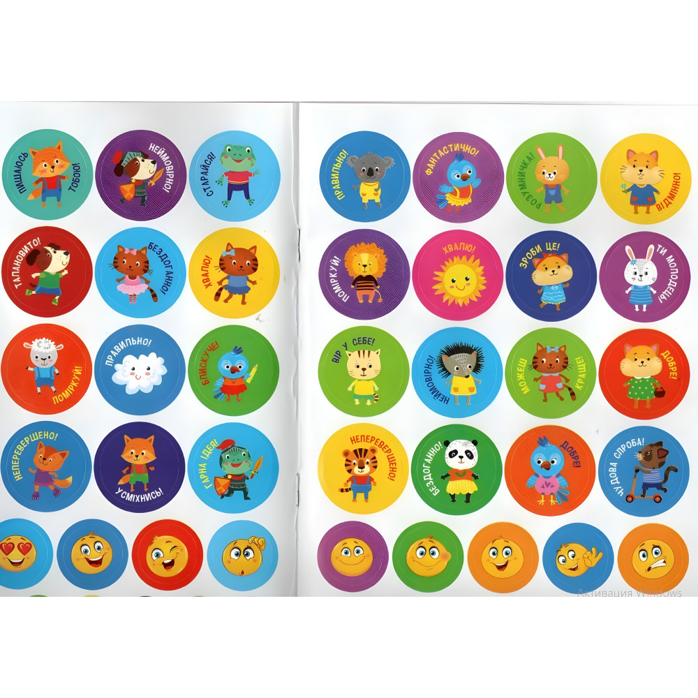 Книга Мотивувальні наліпки містять понад 100 яскравих стікерів які можна використовувати як для навчання, так і під час ігор. Наліпки мають привабливий дизайн і містять різні мотивувальні фрази, символи успіху й емодзі, якими можна відзначати персональні досягнення дитини, підтримати її зусилля, підвищити рівень самооцінки й заохочувати до подальших перемог.