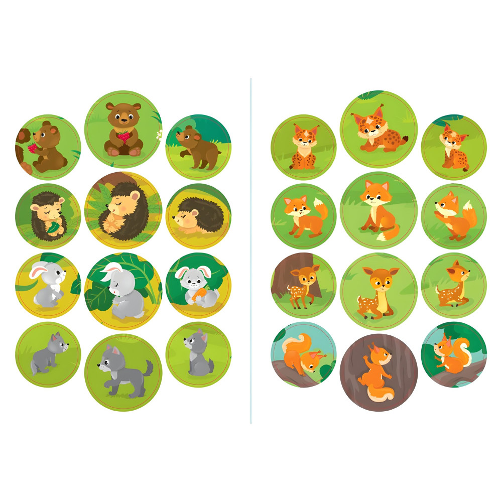 Ця книжка познайомить дітей з лісовими тваринами та їхніми дитинчатами. Вона допоможе є ятати їхні назви та дізнатися, що вони люблять робити. Великі наліпки урізноманітнять пізнавальний процес, перетворивши його на цікаву гру. Книжка допоможе розширити кругозір малюка й розвинути дрібну моторику пальців рук. Видання призначене для спільної роботи дорослих з дітьми віком від одного року.