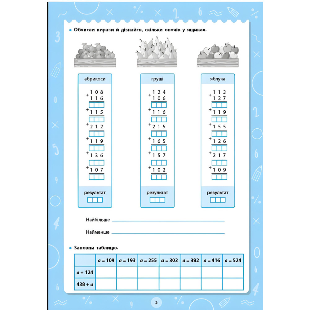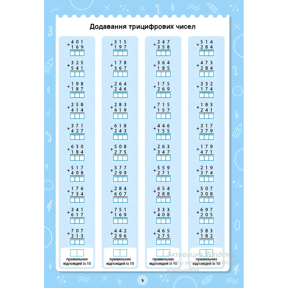«Великий тренажер. Додавання і віднімання багатоцифрових чисел» — це навчальний посібник для учнів початкової та середньої школи, спрямований на відпрацювання навичок усних та письмових обчислень. Зошит містить різноманітні вправи і завдання, які допомагають закріпити правила додавання й віднімання багатоцифрових чисел, розвивають уважність, логічне мислення та математичну грамотність