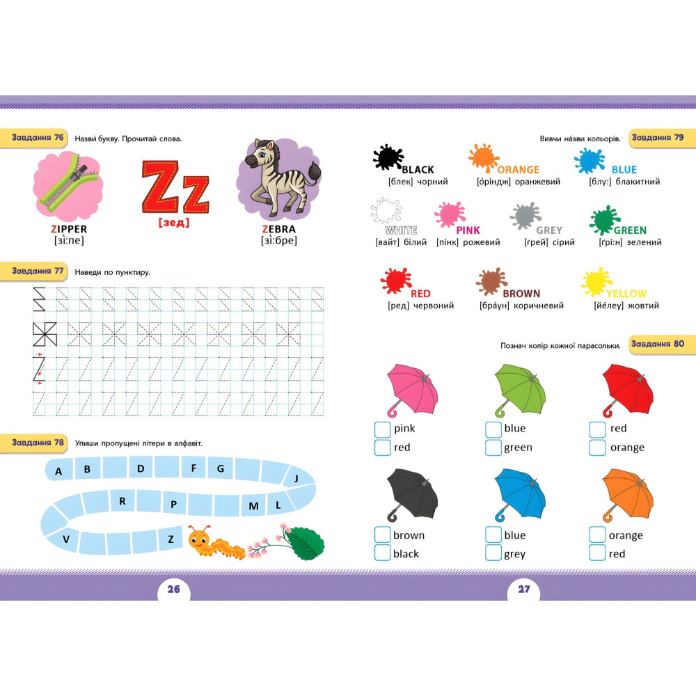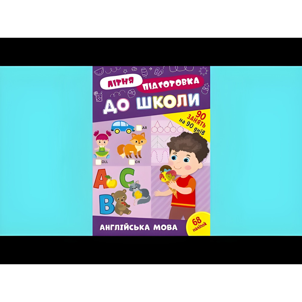 "Серія «Літня підготовка до школи» — незамінний репетитор для майбутніх успішних першокласників. Кожна книжка містить 90 завдань, розрахованих на щодень літа. Комплексна робота з усіма виданнями серії допоможе повправлятися в математиці, логіці, читанні, довкіллі, англійській мові та прописах. Цікаві завдання будуть запорукою якісного й захопливого процесу підготовки для дошкільнят, адже всі вони подані від простого до складного й передбачають використання олівців чи наліпок, що допоможе потренувати дрібну моторику пальців рук. Із книжкою «Англійська мова» дитина вивчить букви англійського алфавіту, навчиться писати їх і розпізнавати серед інших літер; запам’ятає перші англійські слова й фрази, потренується читати короткі речення, а також виконає прості вправи, що допоможуть сформувати елементарний англомовний словниковий запас. Видання призначене для спільної роботи дорослих із дітьми дошкільного віку."