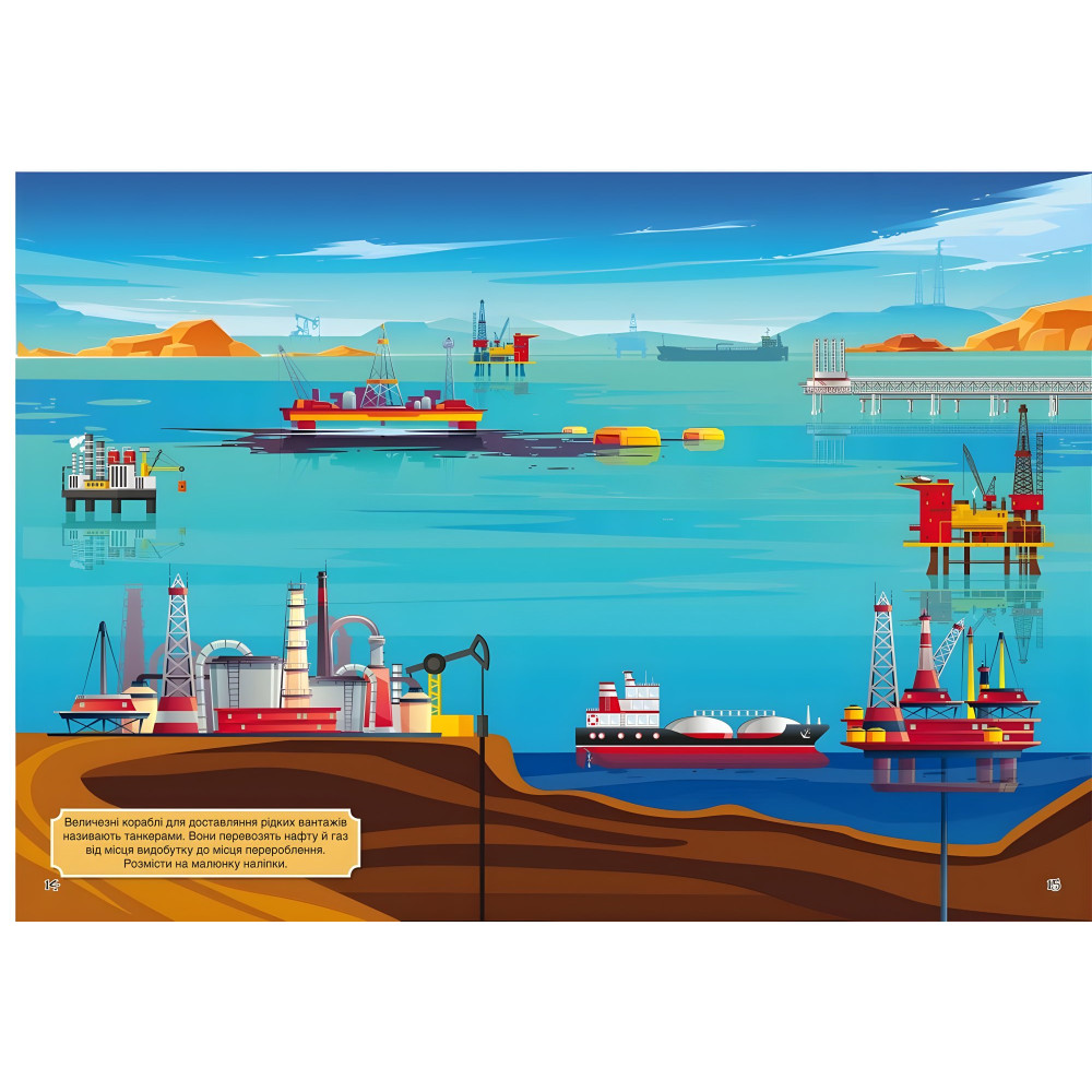 Розгорнувши цю книжку, юний читач вирушить у незвичайну морську подорож. Спочатку він опиниться в минулому: побачить човни хоробрих вікінгів і візьме участь у битві піратських вітрильників. Потім перенесеться в наш час, аби дізнатися, які віді суден існують сьогодні. У морській мандрівці малюкові не доведеться нудьгувати, адже він буде знайомитися із цікавими фактами та розфарбовувати малюнки, доповнюючи їх 225 яскравими наліпками.