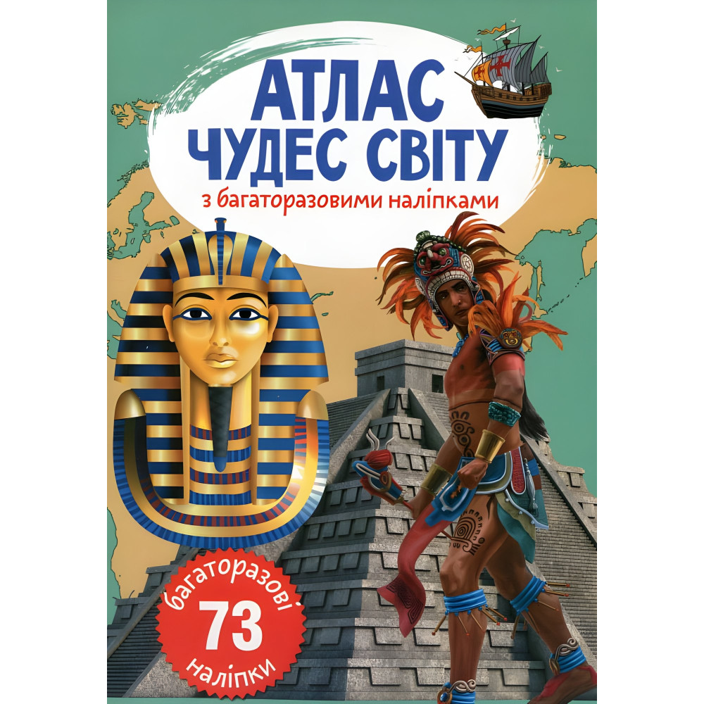 Розгорнувши наш атлас, ви дізнаєтесь про чудеса світу. Розглядайте яскраві ілюстрації і доповнюйте малюнки багаторазовими наліпками.
