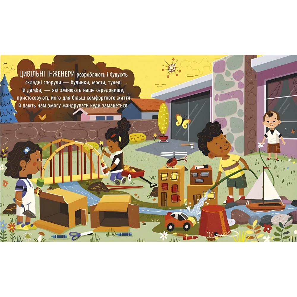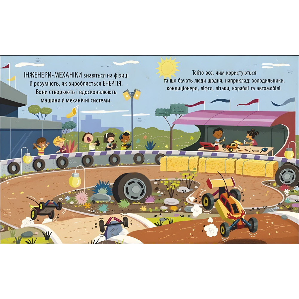 Ілюстрована енциклопедія про технічну творчість якнайліпше підходить для дошкільнят і молодших школярів. У ній коротко описані професії інженерів у різних галузях — від електроніки до астронавтики. Малеча дізнається, хто проєктує та створює мости, літаки, ракети, роботів і навіть штучні людські органи. А сюжетні ілюстрації допоможуть розібратися з усім різноманіттям роботи інженерів. Пробудіть у дитині цікавість до науки й технологій з цією серією!