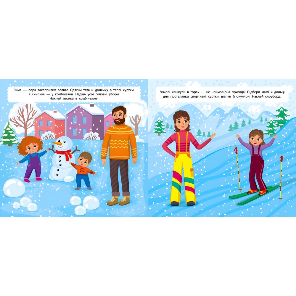 Разом із цією книжкою дитина відчує себе справжнім стилістом і зможе за допомогою наліпок утілити в життя своє бачення стильного й неповторного образу. На сторінках книжки малюк підбере святковий одяг й аксесуари для весілля і дня народження, яскраві костюми для маскараду та Геловіну, неповторні костюми для танцювальних виступів, створить колоритні образи до Дня вишиванки й утілить у життя оригінальні й цікаві ідеї для піратської та гавайської вечірок.