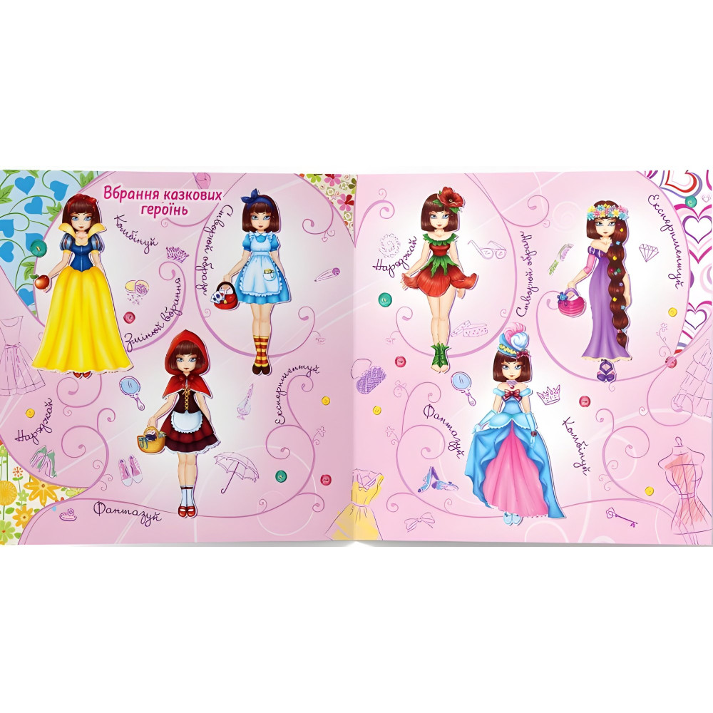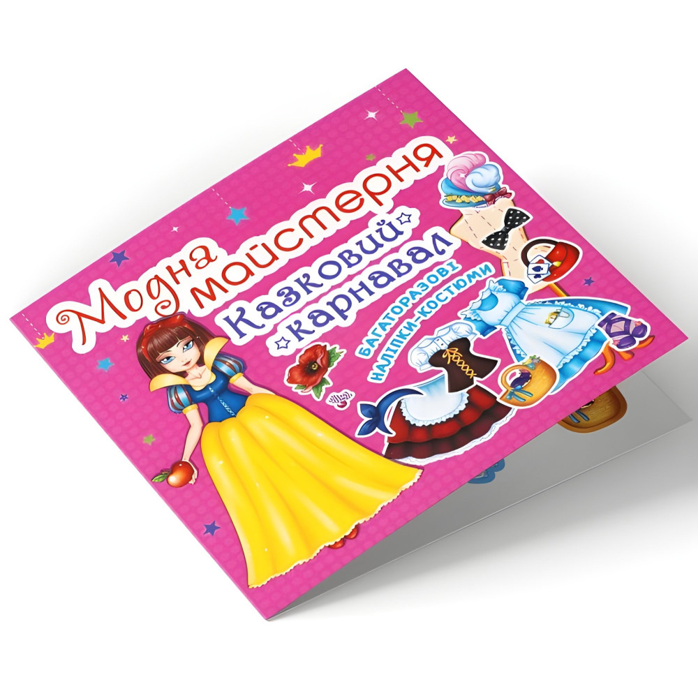 Книжки серії «Модна майстерня» адресовано дівчаткам, яких цікавлять стиль, мода і краса. Багаторазові наліпки- костюми, представлені на сторінках видання, дозволять наряджати героїню, створюючи все нові й нові образи. Тепер кожна дівчинка зможе відчути себе дизайнером- модельєром. Дай волю фантазії і креативу! Підбери героїні казкове вбрання, в якому вона піде на зустріч з принцом!