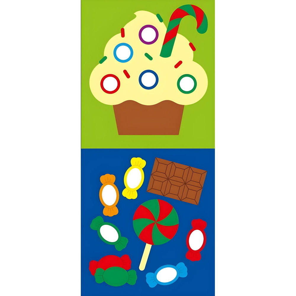Дитині потрібно підібрати та наклеїти наліпки у відповідні місця, створюючи власну **новорічну ялинку**.