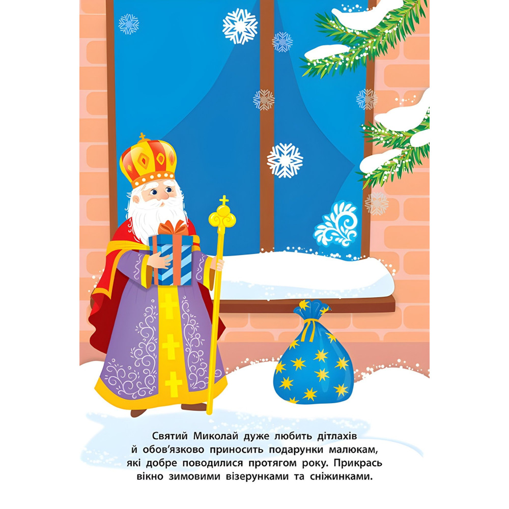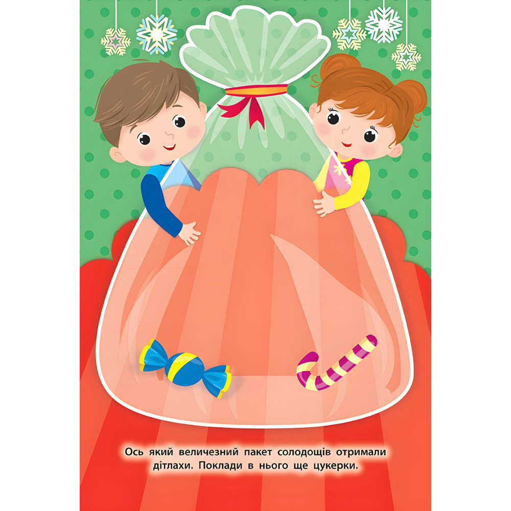 Разом із цією книжкою малюк порине у світ зимових свят і проведе годину цікаво й пізнавально. Виконуючи прості завдання за допомогою наліпок, дитина розвине фантазію, мислення та дрібну моторику пальців рук.