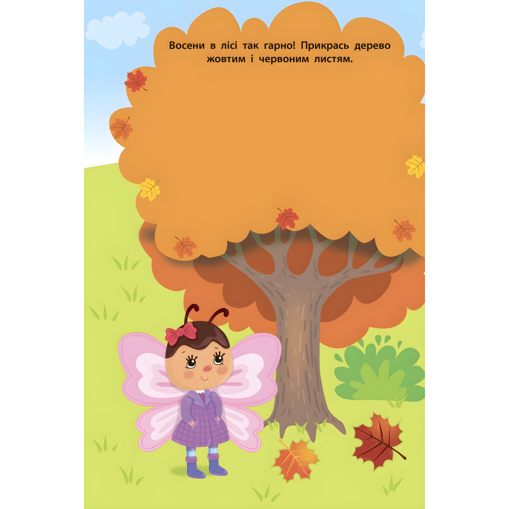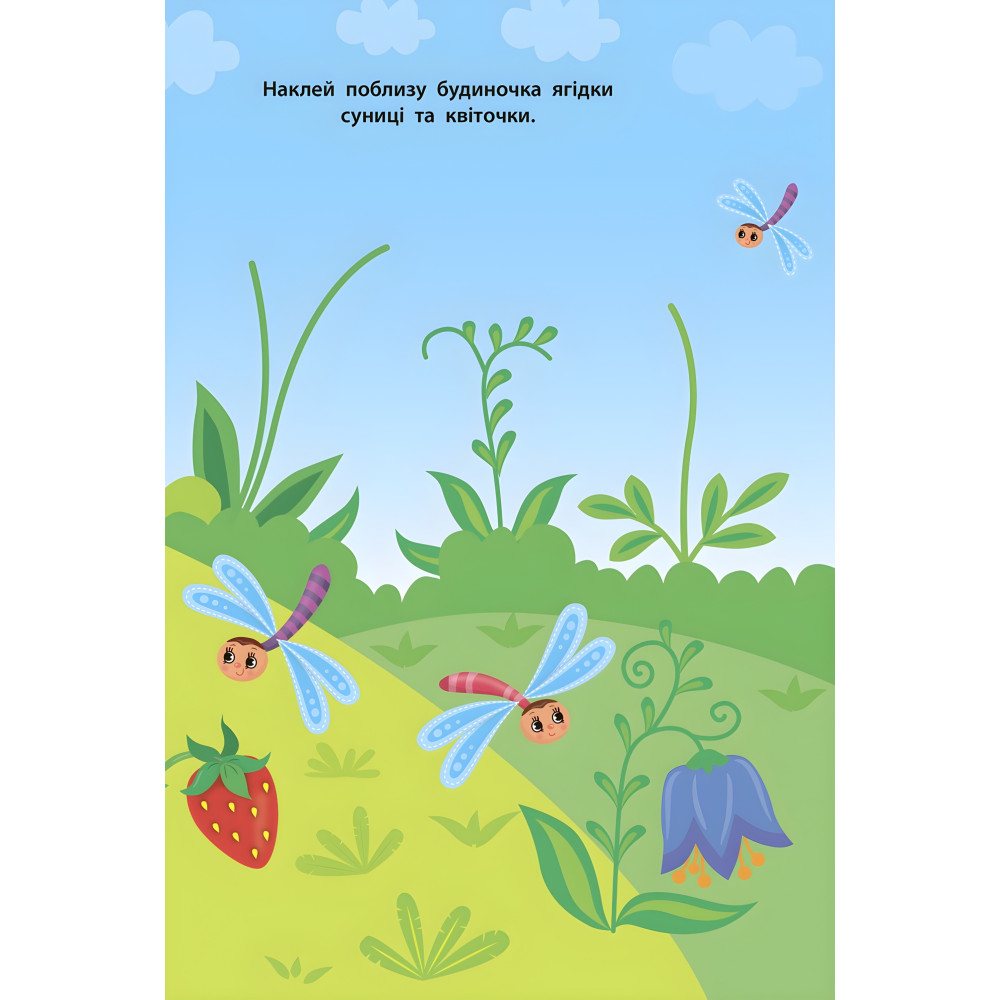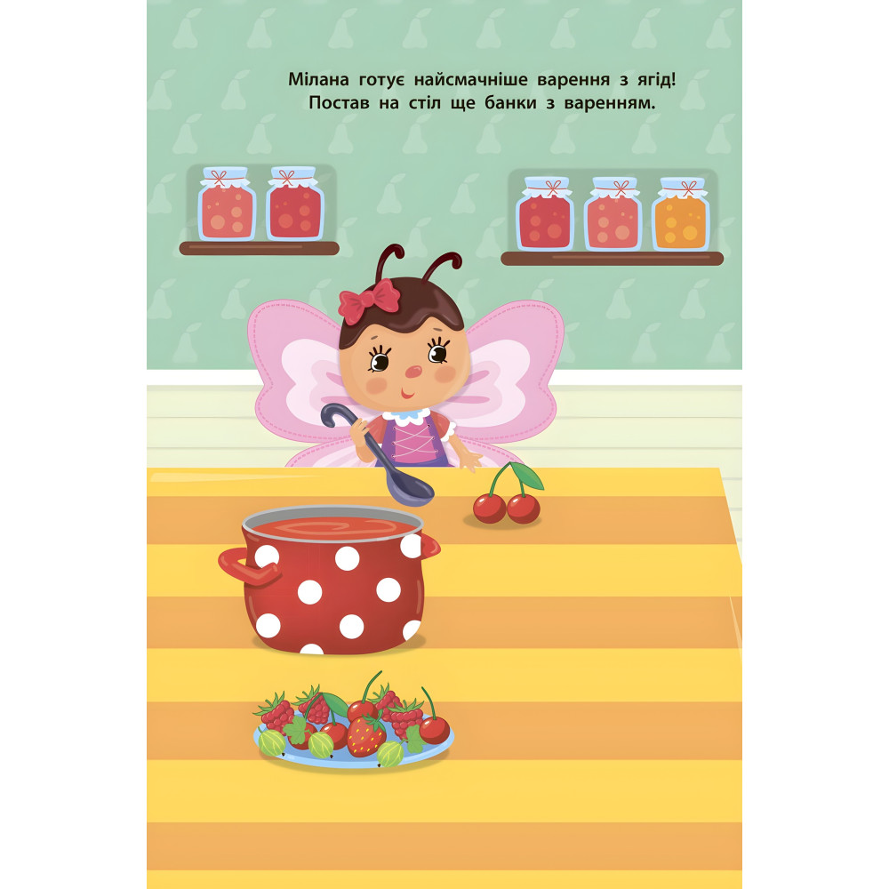 Книга допоможе малюкові весело та пізнавально провести час разом із кумедним метеликом Міланою, що живе в чарівному будиночку-ябочку. Виконуючи прості завдання за допомогою наклейок, дитина розвине фантазію, мислення та дрібну моторику пальців рук.