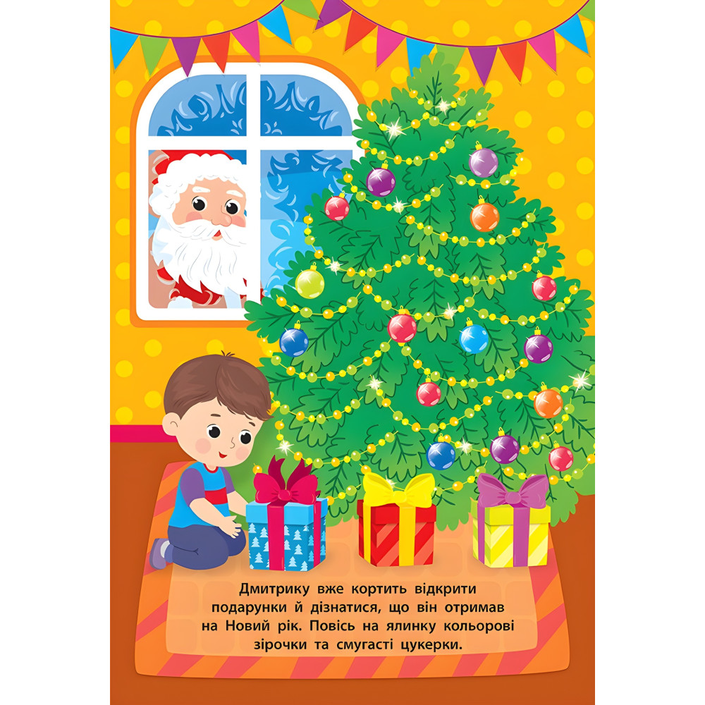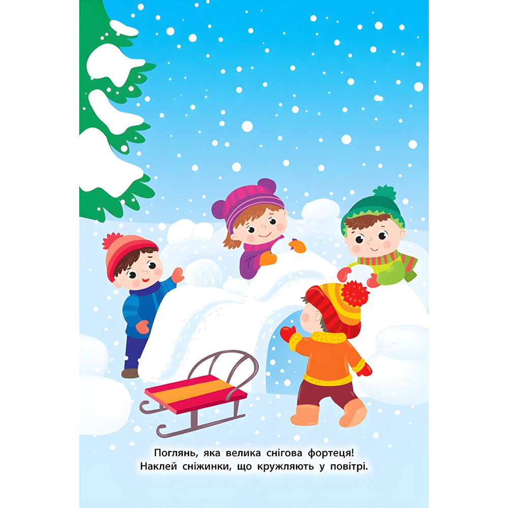 Разом із цією книжкою малюк порине у світ зимових свят і проведе годину цікаво й пізнавально. Виконуючи прості завдання за допомогою наліпок, дитина розвине фантазію, мислення та дрібну моторику пальців рук.