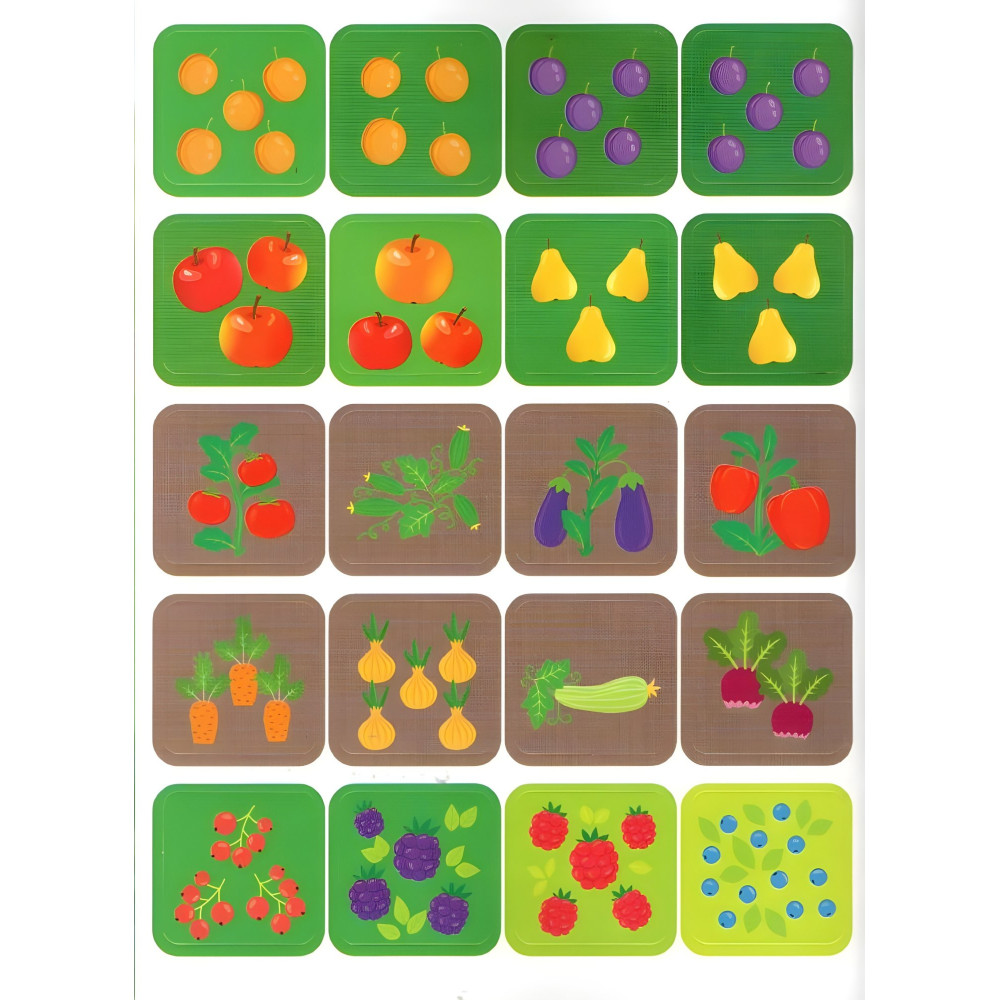 Книжка «Фрукти. Овочі. Ягоди» познайомить малюка з різною городиною і садовиною. Великі наліпки, захопливі сюжети, зрозумілі завдання стануть запорукою цікавого дозвілля, а також сприятимуть розвитку дрібної моторики, мислення, мовлення та зорового сприйняття.