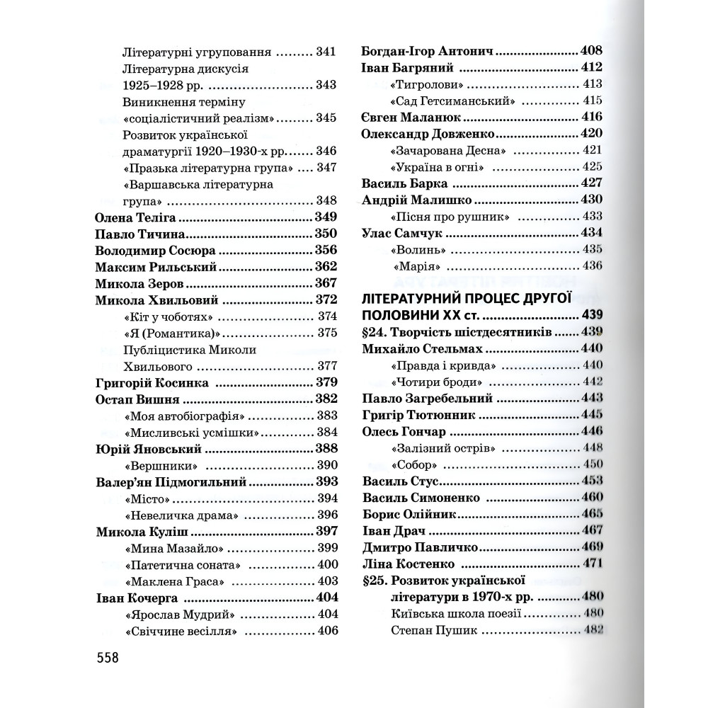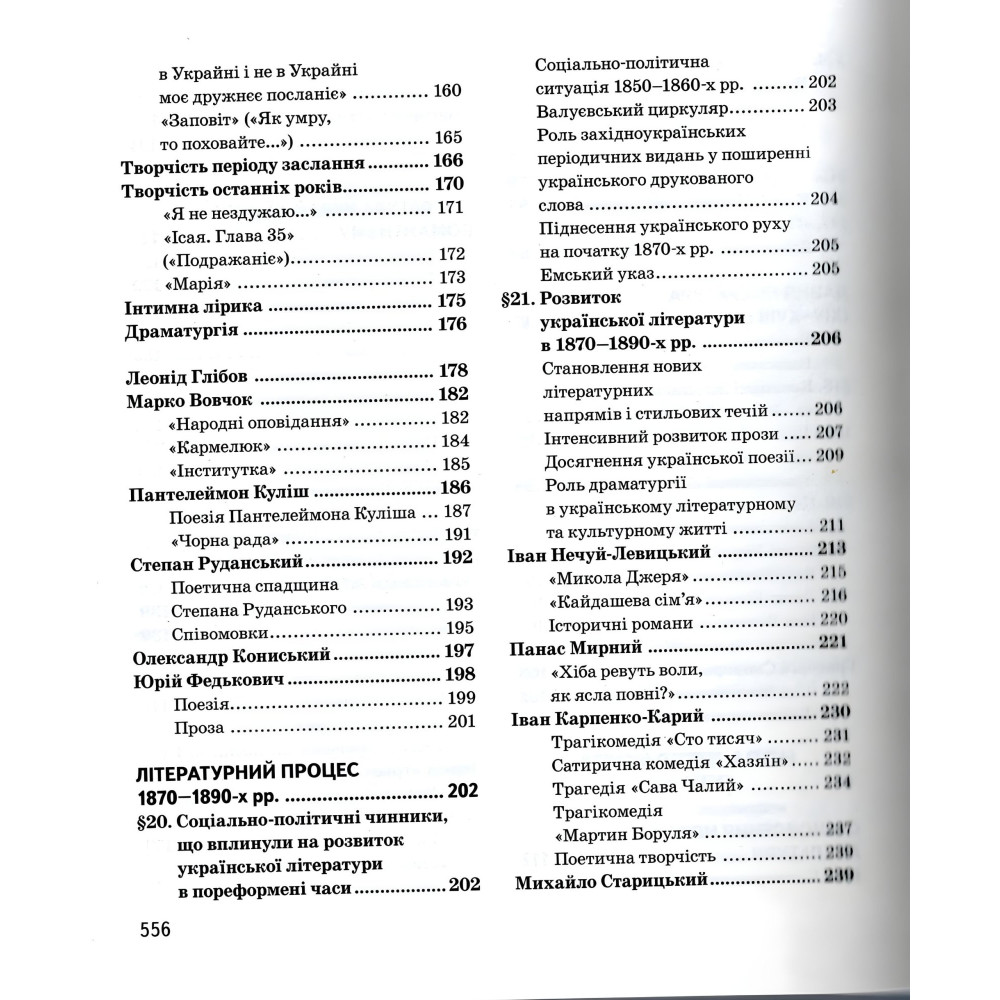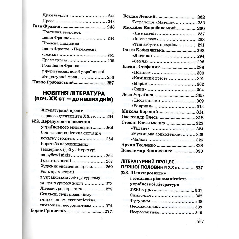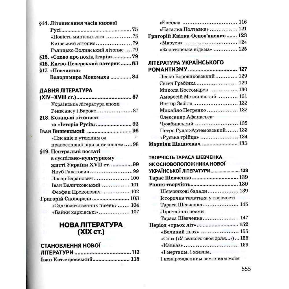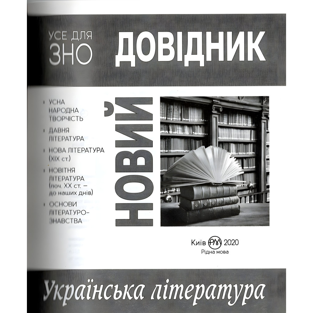 Новий довідник. Українська літератураУ «Новому довіднику» подано найважливіші відомості про надбання українського красного слова — від найдавніших зразків усної народної творчості й письменства до новітньої літератури перших десятиліть ХХІ ст. — серед іншого й про літературні твори, які входять до шкільної програми. Структурований текст, лаконічні біографії письменників і цікаві факти щодо їхнього життя і творчості, стислий виклад і критичний аналіз літературних творів допоможуть швидко й ґрунтовно опанувати матеріал. Окремим розділом подано основи літературознавства, зокрема пояснено літературні терміни, напрями, течії, стилі тощо. Довідник знадобиться тим, хто хоче поглибити знання з української літератури чі повторити вивчене. Видання також буде найкращим помічником школярам під час підготовки до ДПА та ЗНО, і, безперечно, стане в пригоді студентам, викладачам та й усім, хто любити українську літературу і прагне ліпше її знаті.
