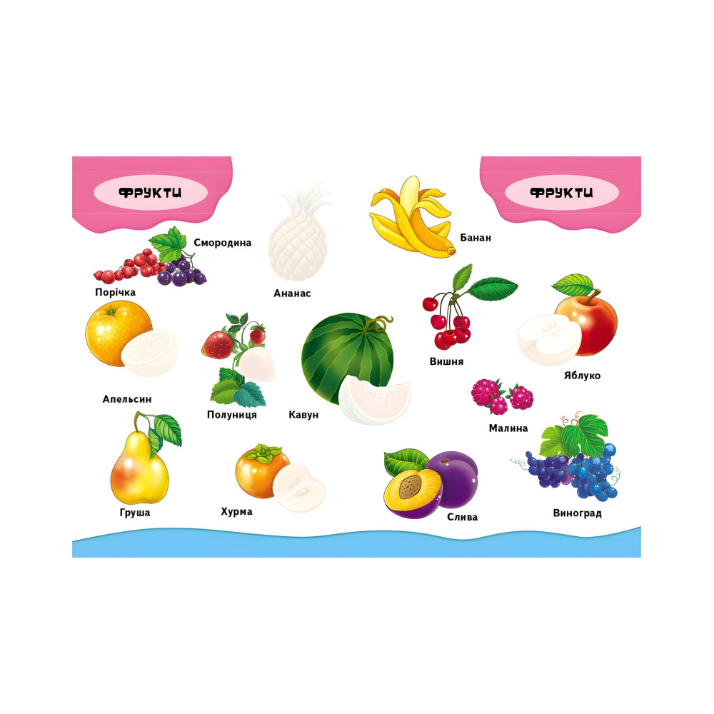 На яку геометричну фігуру схожа груша? А полуниця?Відповіді на ці питання стануть для дитини 2-4 років справжнім відкриттям. Альо головне — вона легко зрозуміє, що таке трикутник, «познайоміться» з грушею і полуницею. Виявляється, хоч контури обох і дуже схожі на цю геометричну фігуру, це абсолютно різні плоди з різними назвами.50 наліпок у книжечці «Овочі та фрукти» перетворять знайомство малюка із зовнішнім поглядом «головних учасників» його улюблених страв на захопливу, розвивальну гру.Окрім кругозору, дитина розвине дрібну моторику ручок і пальчиків, виконуючи завдання з наклеювання відсутніх на малюнках половинок яблука, морквини, лимона, перцю.