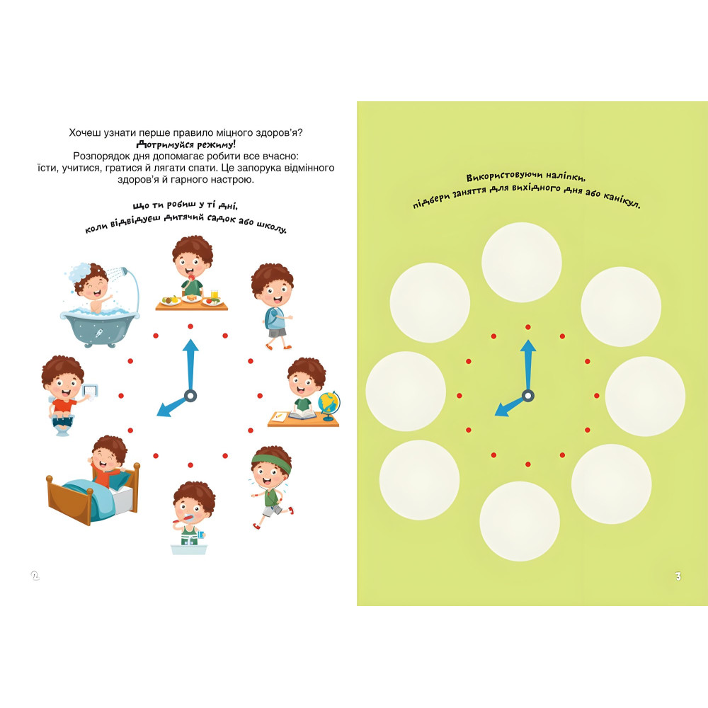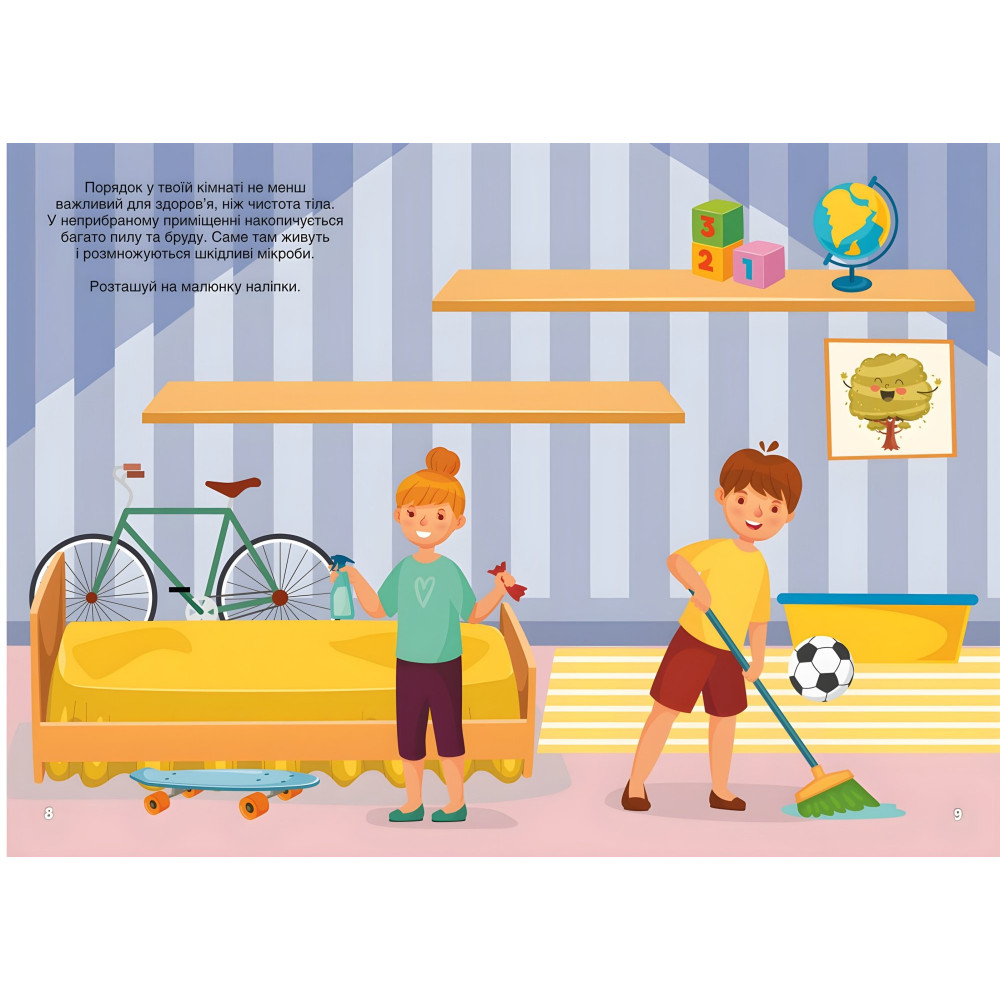 Швидше Заздрий у книгу та Дізнайся, що шкодить твоєму здоров'ю, а, навпаки, його зміцнює. Ми розповімо, як захиститися від хвороб, і запропонуємо виконати цікаві завдання. Вбережися з ними допоможе 41 розвивальна наклейка. За підказка тобі керувати зазначені поруч стикерами номери сторінок.