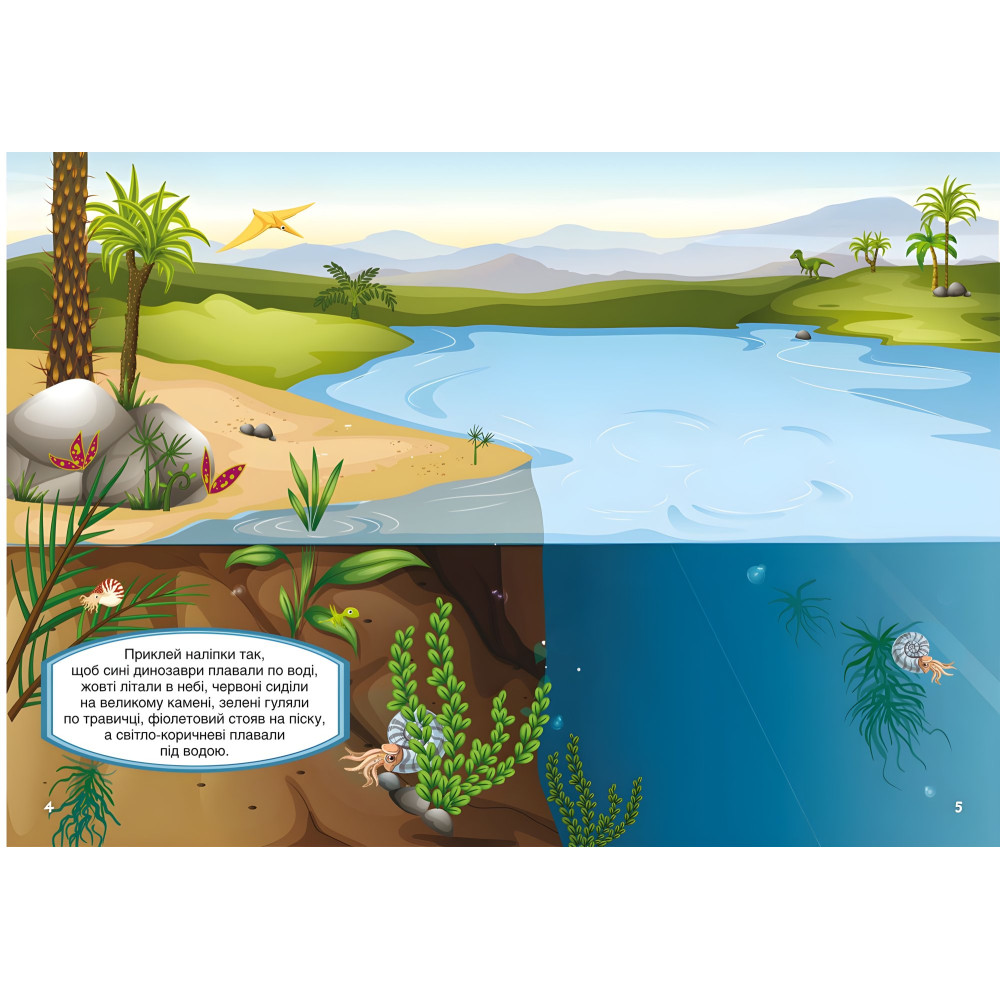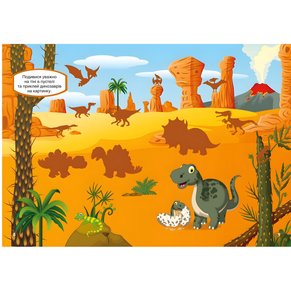Хутчіш зазирни в нашу книжку, щоб познайомитися з кумедними динозавриками. Ти зможеш дізнатися про них чимало цікавого, якщо правильно виконаєш усі запропоновані завдання. А допоможуть тобі в цьому 55 барвистих розвивальних наліпок. Використовуй як підказку зазначені поруч із ними номери сторінок.