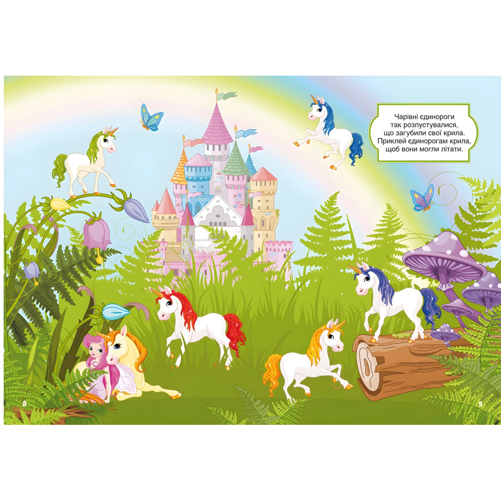 Ця книжка відкриє тобі чарівний світ, де живуть дивовижні істоти. Ти вирушиш на чаювання до палацу принцеси Юні, разом із царівнами-русалоньками полічиш усіх рібок у морі й допоможеш квітковим феям повернутися до їхніх будиночків. Тобі стануть у пригоді 50 яскравих наліпок. Використовуй як підказку зазначені поруч із ними номери сторінок.