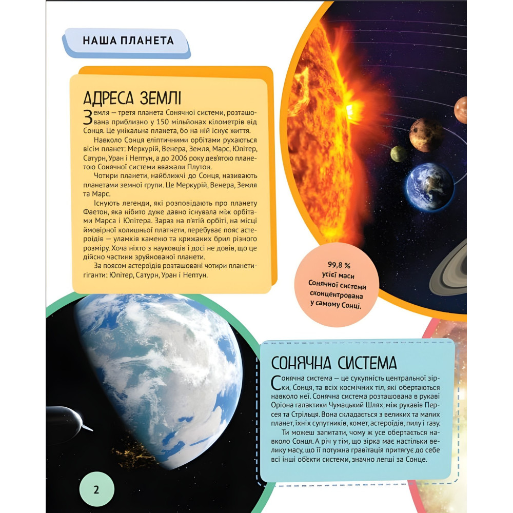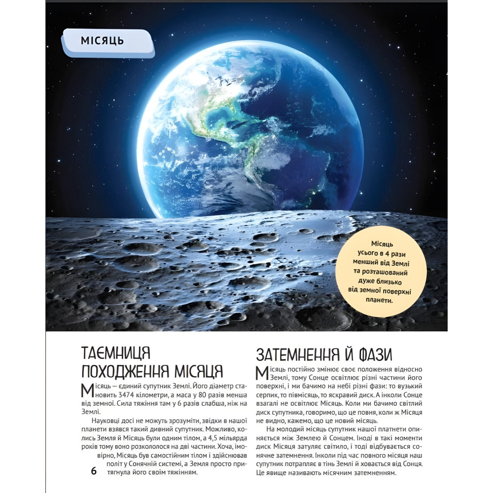 Ця ілюстрована енциклопедія відкриє юним читачам найцікавіші таємниці планети Земля: • якою є адреса нашої планети у Всесвіті; • які континенти й океани вкривають поверхню Землі; • якими рекордами може похвалитися кожен материк; • які цікавинки приховують морські глибини. Важливі факти, докладні схеми та приголомшливі фотографії, уміщені в цій книзі, унаочнюють чарівний світ нашої планети.