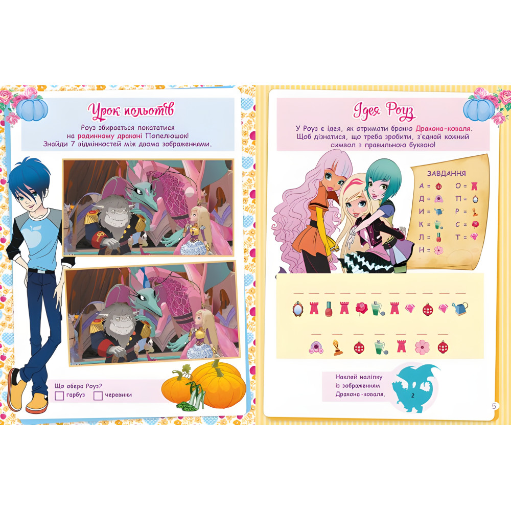 Роуз Попелюшка запрошує до Країни Казок! Вигадуй разом з командою Роуз нові магічні формули! Створюй у диво-лабораторії чарівне зілля! Дізнавайся про нові задачі команди Королівської Академії і вирішуй їх, думаючи, граючись, фантазуючи і використовуючи наліпки! Захоплива пригода триває…