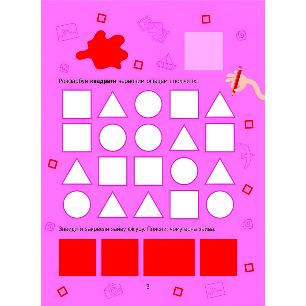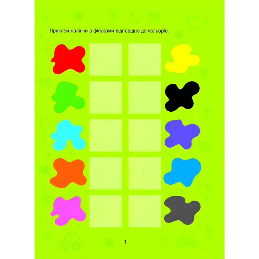 Із цією книжкою маленькі розумахи навчаться розрізняти кольори, познайомляться з основними фігурами й дізнаються їхні особливості. Цікаві завдання та яскраві малюнки допоможуть малечі розвинути уяву та асоціативну пам’ять, а разом із наліпками дітлахи потренують дрібну моторику. Веселих занять!