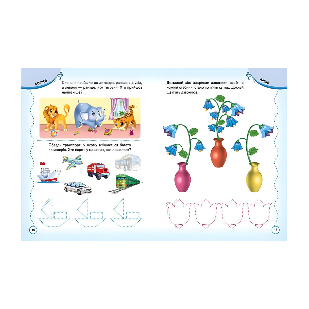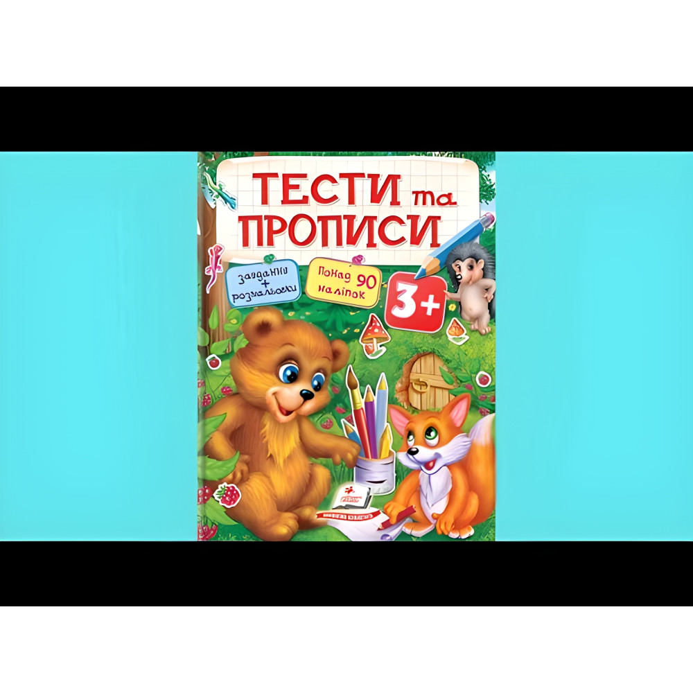 Сучасні вимоги дошкільної підготовки такі, що діти в 3 рокі повинні вже, що називається, по повній "включатися" в процес розвитку навичок лічби, письма, мови, порівняльного, просторового і логічного мислення, творчої фантазії. Крім того, діти в 3 роки, щоб відповідати сучасним вимогам, повинні активно тренуватися у швидкості прийняття рішень при виконанні розвиваючих завдань - ті, що називається кмітливістю. Це вкрай важливо не тільки для підготовчих дошкільних програм, які дитина повинна буде освоїти перед школою, а й для його інтелектуального розвитку в принципі. Вісь з такими цілями якраз і випущена наша нова книжка для дітей - "Тести і прописи 3+". Для цього в ній в ігровій формі - адже з дитиною в 3 рокі тільки за допомогою грі можливо вирішувати такі педагогічні завдання - представлені тематичні розділи: форми і кольори; логіка; рахунок; пам'ять і увагу; мислення. Кожна тема на одну сторінку, яка 10 разів повторюватися в книжці. Це дозволяє постійно повторювати і закріплювати набуті навички. У розділі "тварини" звірята з різних куточків планети допомагають дітям тренувати кмітливість. У розділі "прописи" - практика написання і креслення елементів для підготовки руки до листа. Ну, а гру, за допомогою якої все це відбувається цікаво і весело, забезпечують 90 кольорових наклейок.