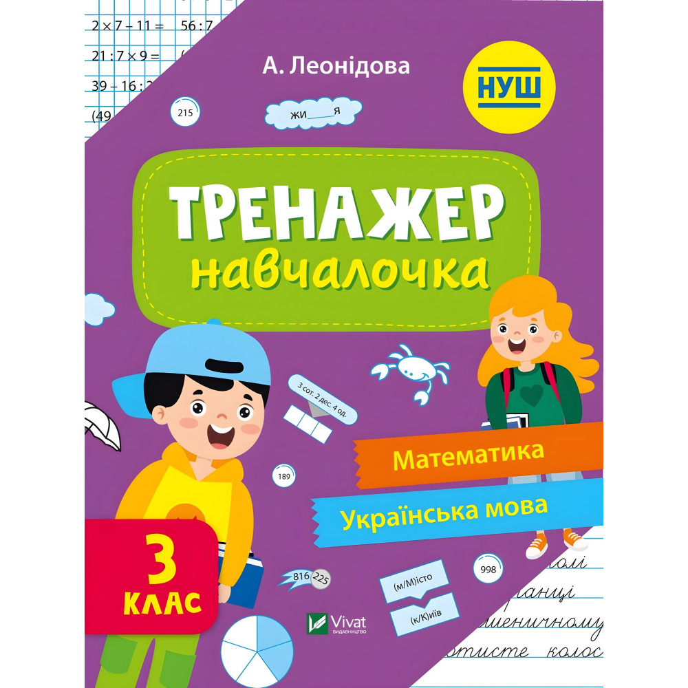Дитина не встигає засвоювати шкільний матеріал? Отримує низькі бали та змушена займатися додатково? Тренажер-навчалочка — посібник, який допоможе учням відпрацювати практичні навички та закріпити знання з різних тем. Із ним ви заощадите час на підготовку до уроків математики та української мови й різноманітните освітній процес. Видання відповідає вимогам освітніх програм Нової української школи. Завдяки тренажеру учні: відпрацюють навички додавання й віднімання Призначений для використання як на уроках, так і для самостійної роботи вдома. у міжах 100; потренуються розв’язувати рівняння; ознайомляться з різними частинами мови; закріплять знання про будову речення.