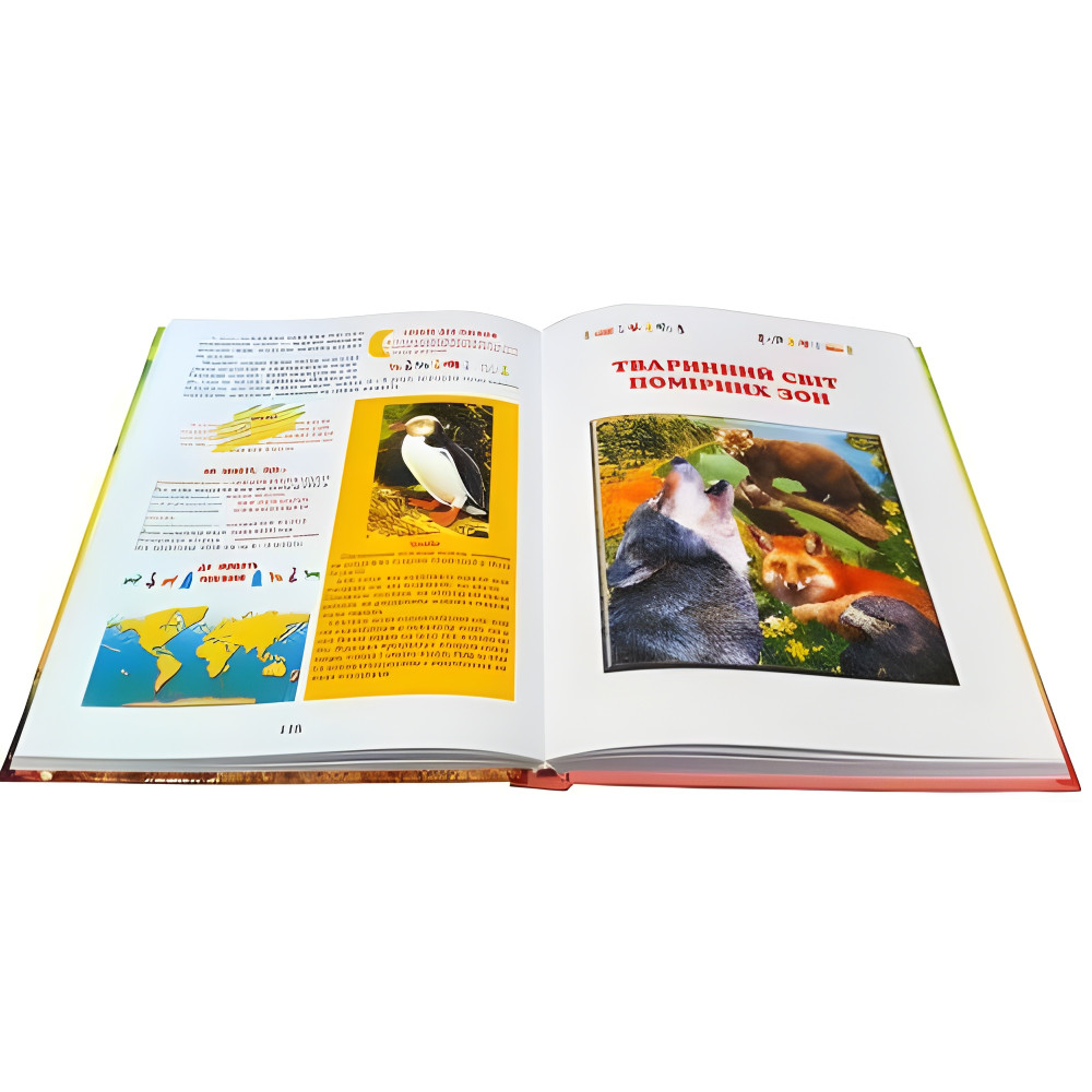 «Тваринний світ» – це захоплююча розповідь про братів наших менших, що супроводжується барвистими ілюстраціями, що показують їх у всій красі. Призначена для школярів різного віку, книга розповідає про спосіб життя і звички різних тварин, про те, як вони пристосовуються до навколишнього середовища і адаптуються до клімату, в якому живуть, про їх унікальні здібності та нестандартних манерах поведінки. Розповідь супроводжують і оживляють реальні історії з життя мешканців полів, лісів і саван.