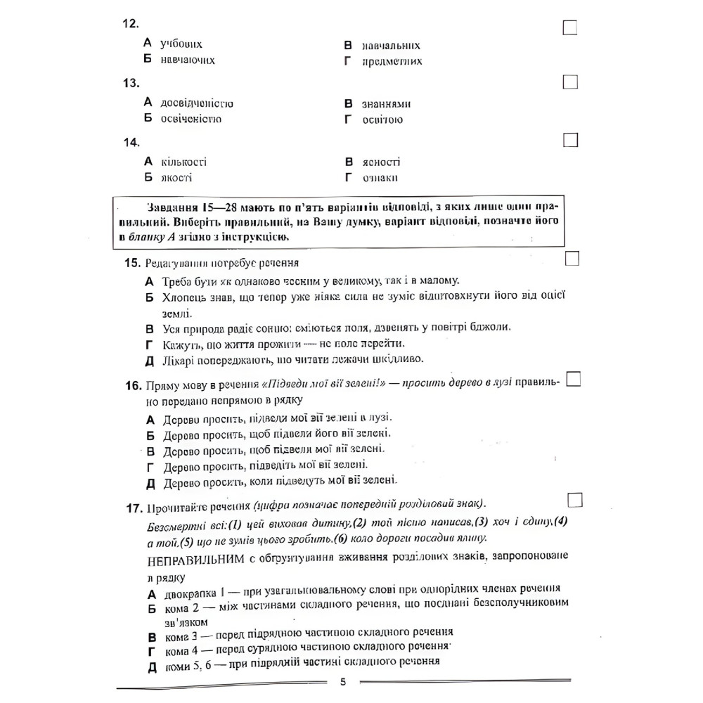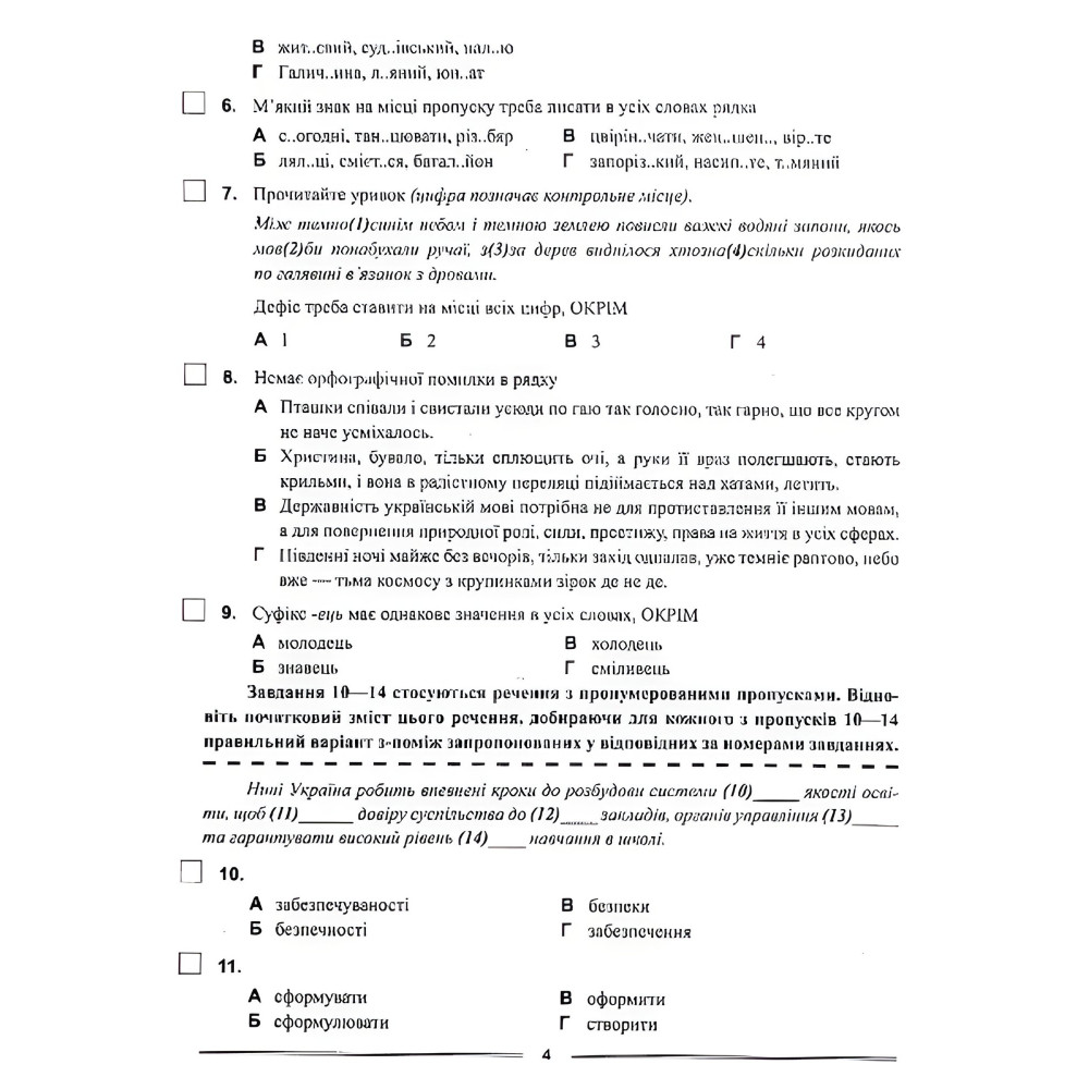 Посібник укладений відповідно до чинної програми МОН України і програми ЗНО з української мови. У посібнику надано 10 варіантів тестів у форматі ЗНО, виконання яких сприятиме ефективній підготовці й успішному складанню тесту.