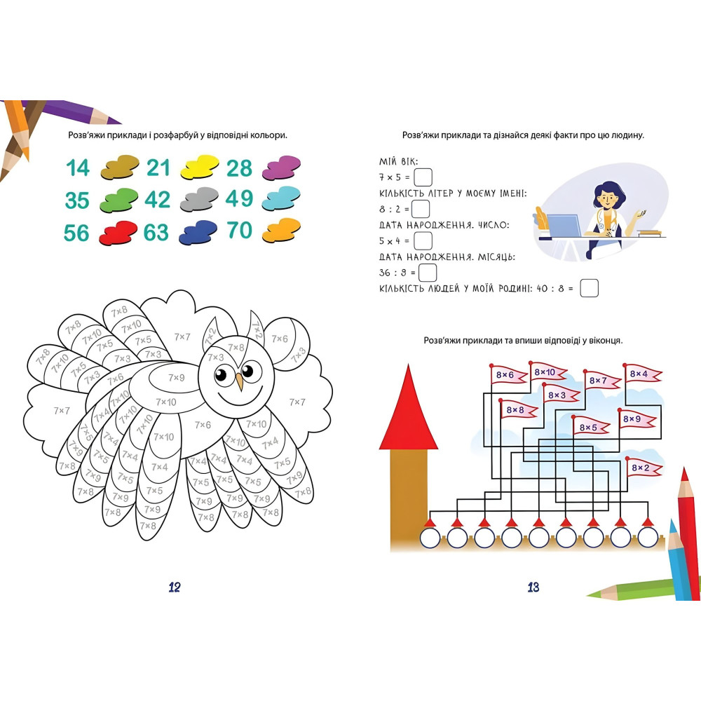 Книжка містить цікаві вправи за темою множення і ділення: обчислення, продовження числового ряду, рівності, лабіринти, математичні розмальовки. Вчить міркувати, розв’язувати приклади. Завдання допоможуть прищепити дитині любов до математики, стануть помічними в розвитку зосередженості, уваги, математичних здібностей школяра.