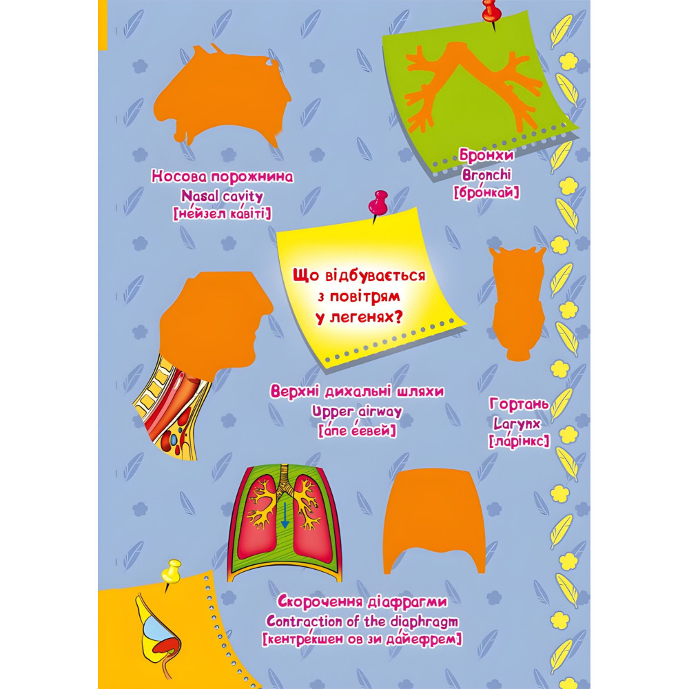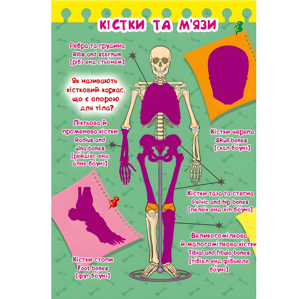 У цій чудовій книзі зібрано велику кількість розвивальних наліпок і цікавих завдань. З її допомогою малюк дізнається багато нового про своє тіло, а також зможе вивчити перші англійські слова.У виданні використовуються яскраві, різнокольорові ілюстрації. Книга призначений для дітей дошкільного та молодшого шкільного віку.