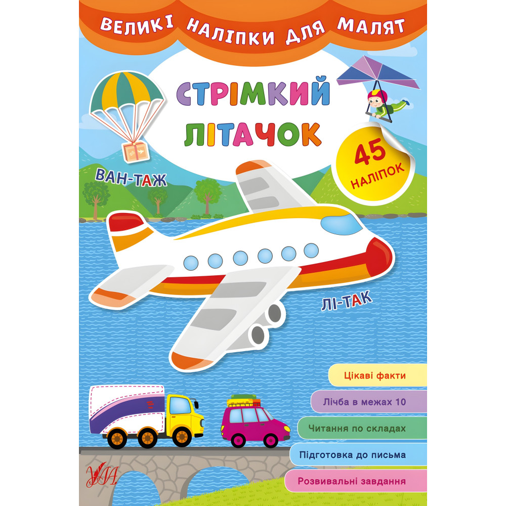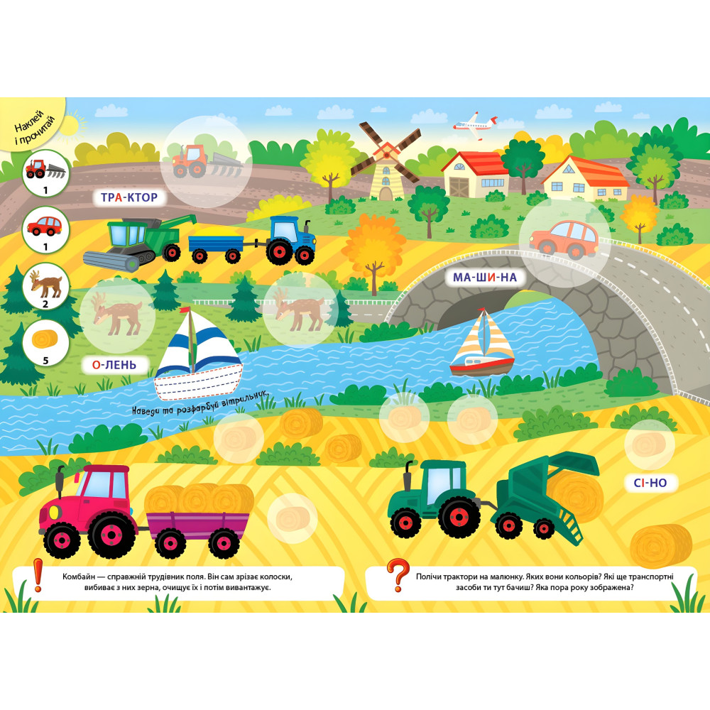 У цьому виданні дитина познайоміться з транспортними засобами й корисною технікою та дізнається цікаві факти про них, повправляється в лічбі й читанні, наведе та розфарбує окремі предмети на малюнках, навчиться правильно визначати колір, форму й розмір, виконає розвивальні завдання, а також потренує увагу та дрібну моторику.