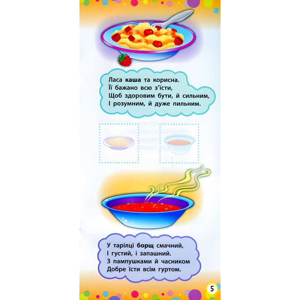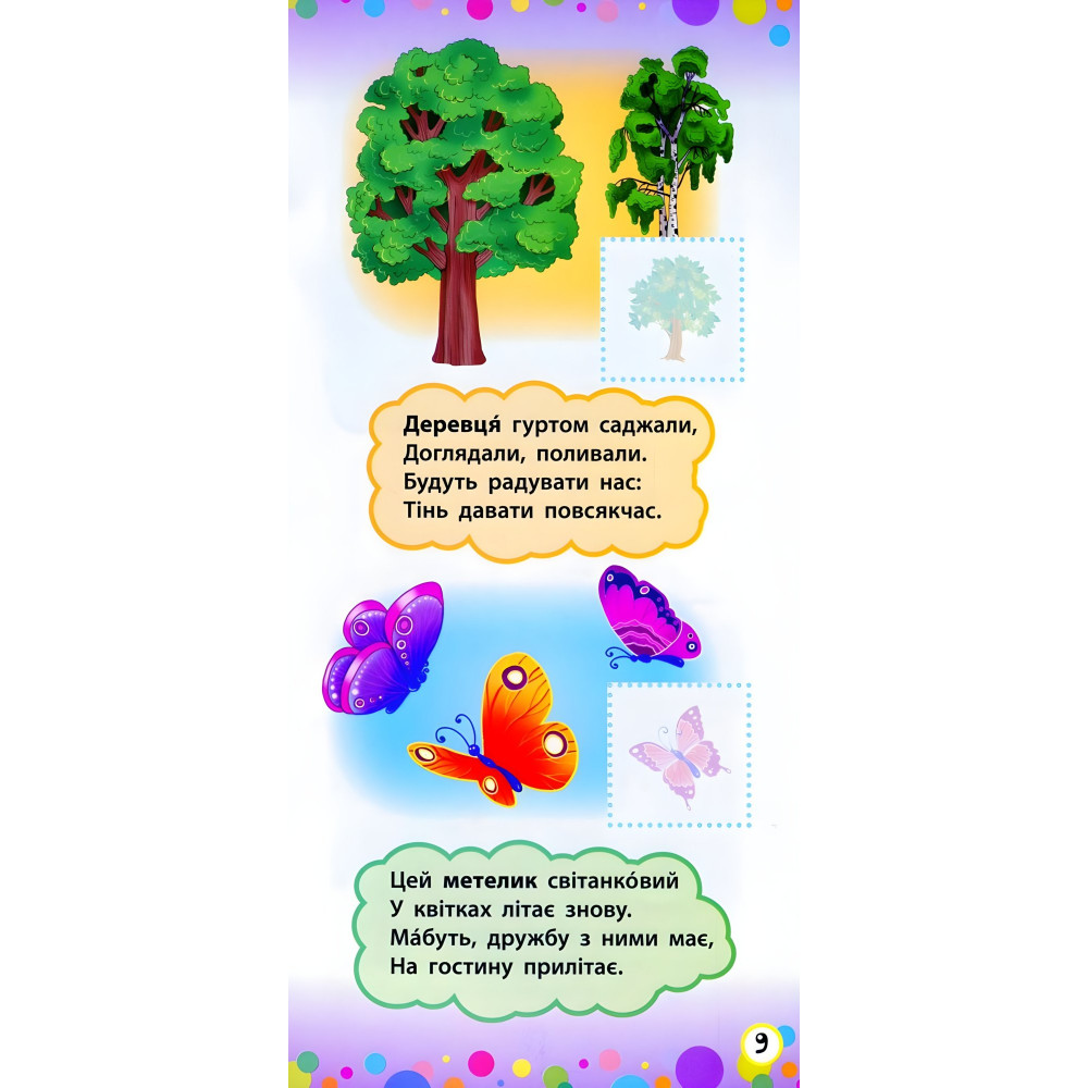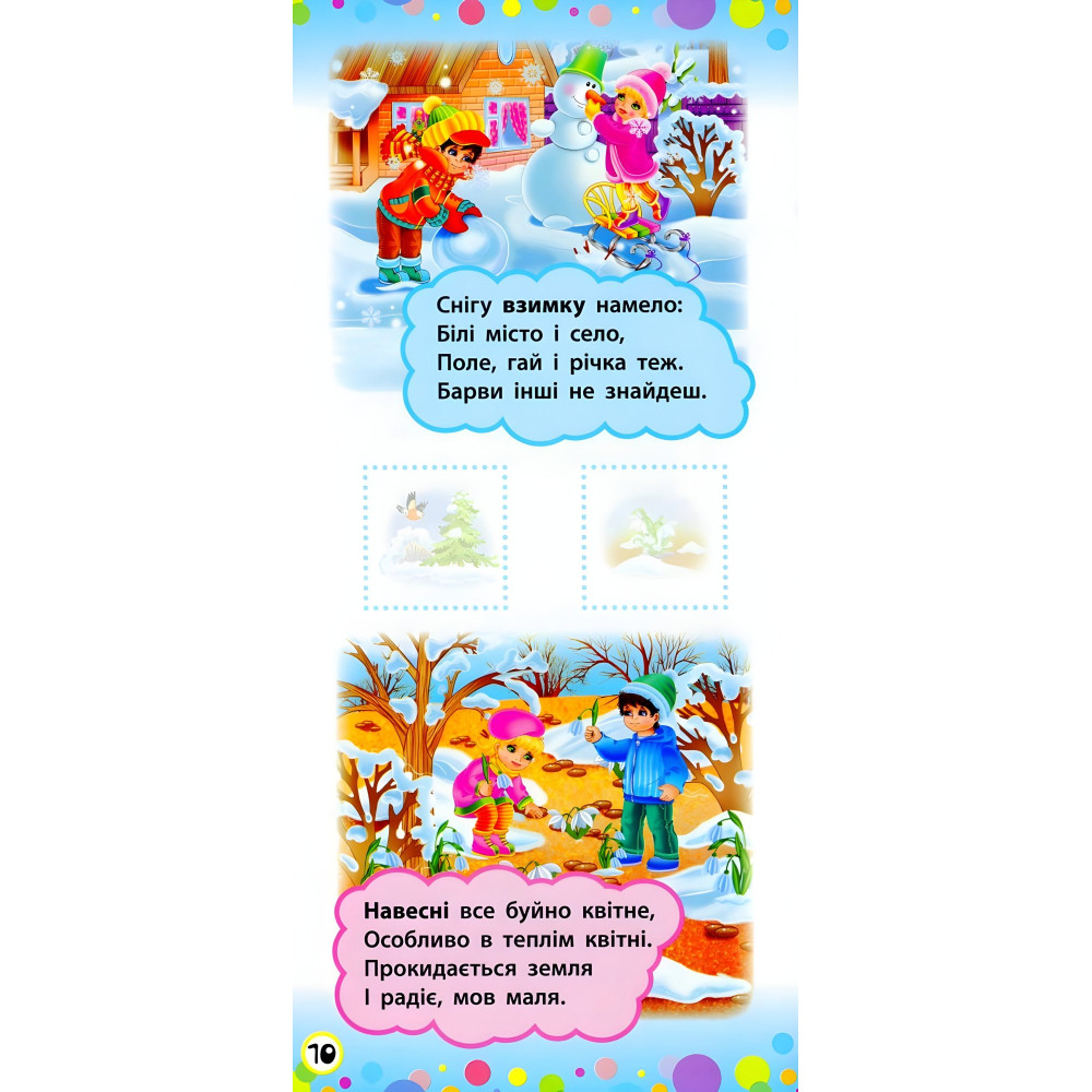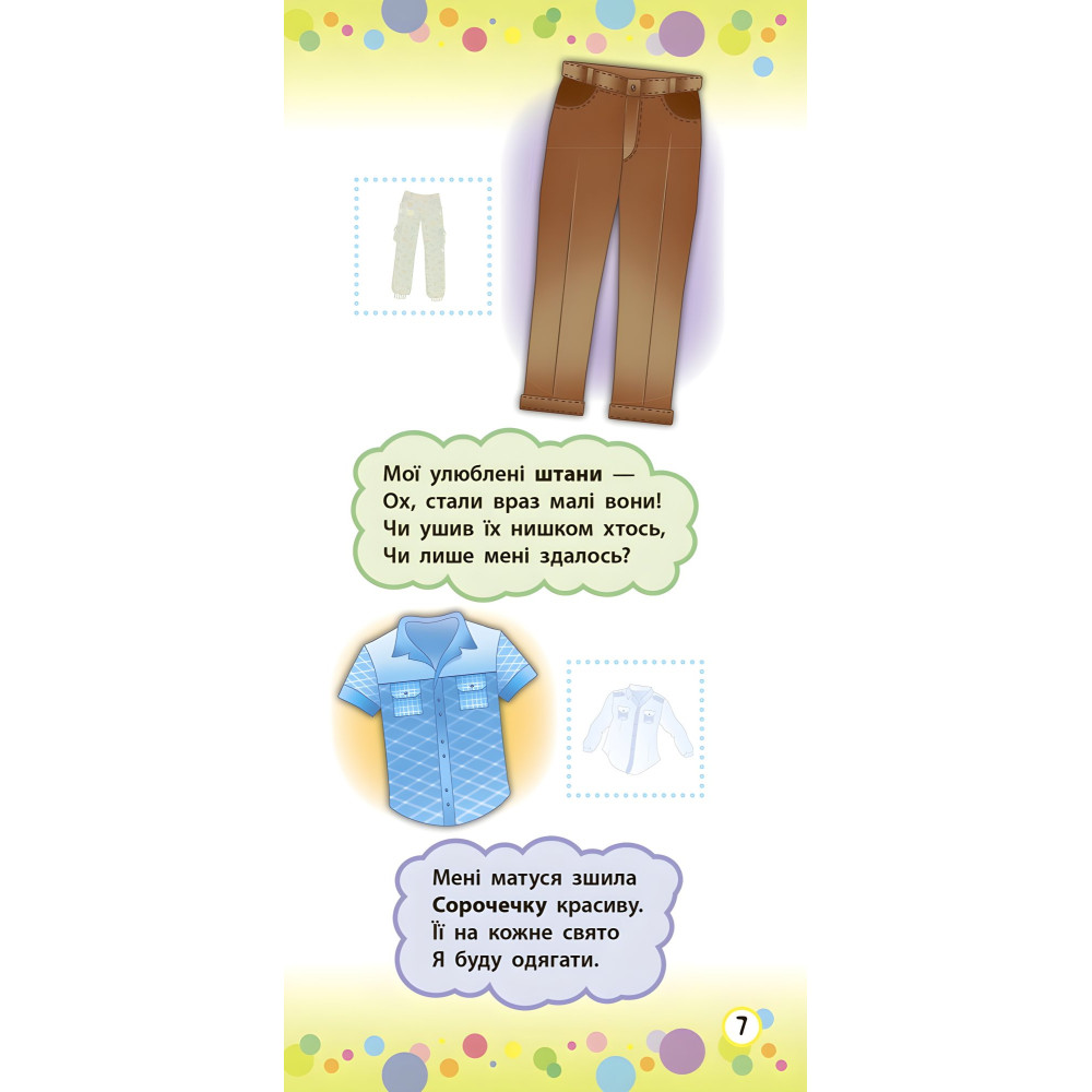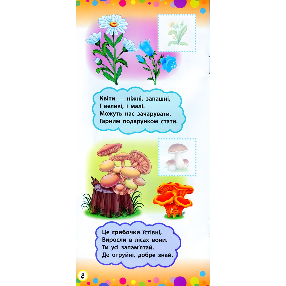 Ця книга у веселій і цікавій формі познайомить ваших дітей із предметами та явищами навколишнього світу. Пізнавальні віршики та яскраві картинки допоможуть малюкам легко та швидко, а головне — із задоволенням вивчити назви меблів, страв, одягу, природних явищ і пір року, а також розвинути зорове сприйняття, уяву та пам'ять. Робота з наклейками неодмінно приверне увагу малюка, урізноманітнить процес навчання й не дасть змогу нудьгувати. Перетворіть дозвілля дитини на цікаву гру!