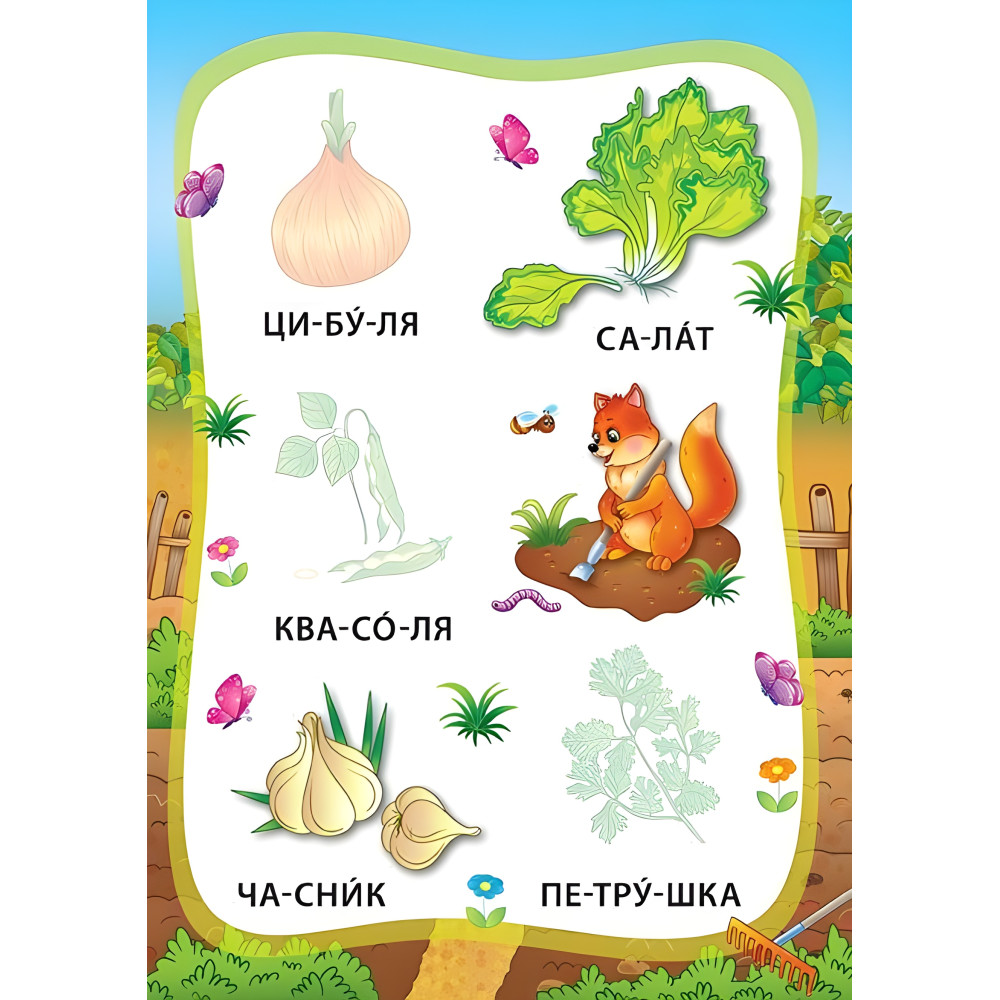 Ваш малюк вивчив літери та готовий йти далі!? Важливо в цей період зацікавити дитину. Книжка «Овочі та фрукти» створена саме для маленьких читачів, які тільки-но відкривають для себе чудовий світ самостійно прочитаних сторінок.Усі слова у виданні поділені на склади та надруковані зручним для читання великим шрифтом, є чимало яскравих ілюстрацій та цілий розворот тематичних наліпок. Саме це зробить складний процес читання легким і захоплюючим.Також ця книжка допоможе малюку є ятати назви овочів та фруктів, розвинути дрібну моторику пальців рук, зорову пам'ять й увагу. Видання призначене для спільної роботи дорослих з дітьми дошкільного віку.