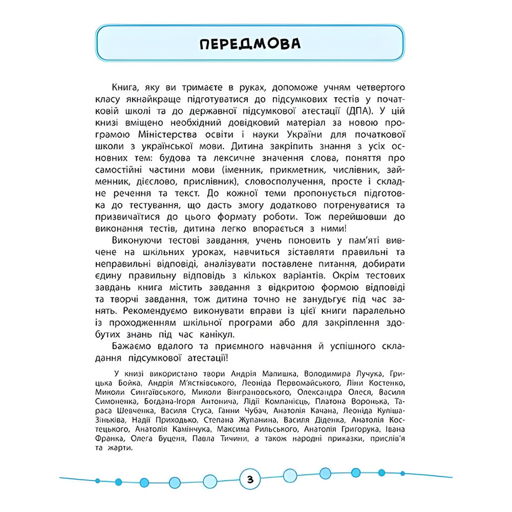 Ця книга допоможе учням четвертого класу успішно підготуватися до підсумкових тестових завдань у молодшій школі. У виданні міститься довідковий матеріал до кожної тими, підготовчі вправи (завдання з відкритою формою відповіді та творчі завдання), а також тематичні тести. Кожен розділ упорядковано відповідно до нової програми Міністерства освіти і науки України.