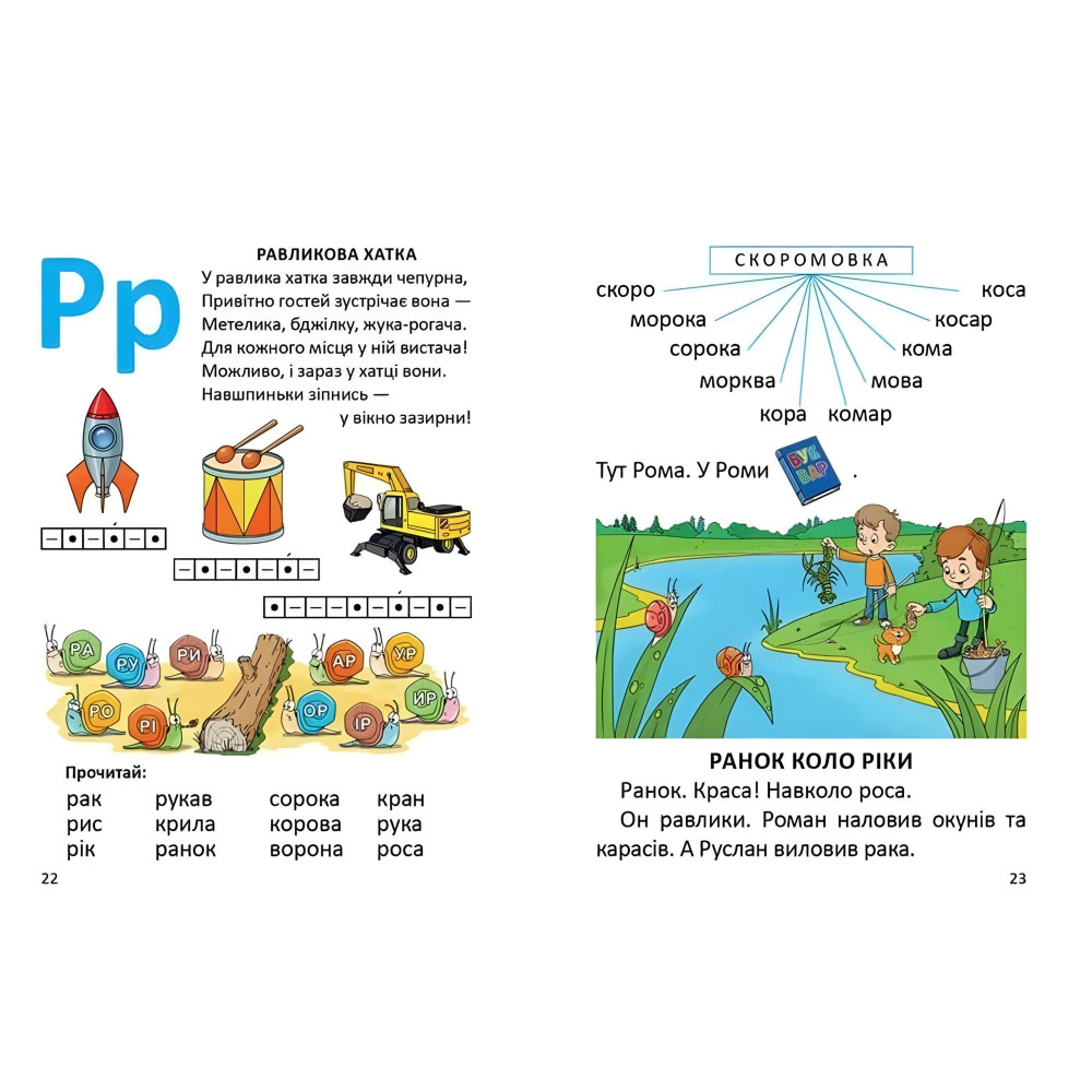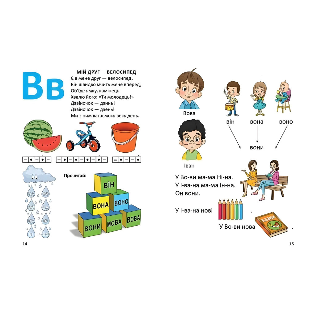 Наш букварик — чудовий помічник у навчанні дитини читанню. Малюк із задоволенням буде опановувати абетку, вчитися читати склади, слова і речення, розглядаючи малюнки, слухаючи вірші та розгадуючи загадки.