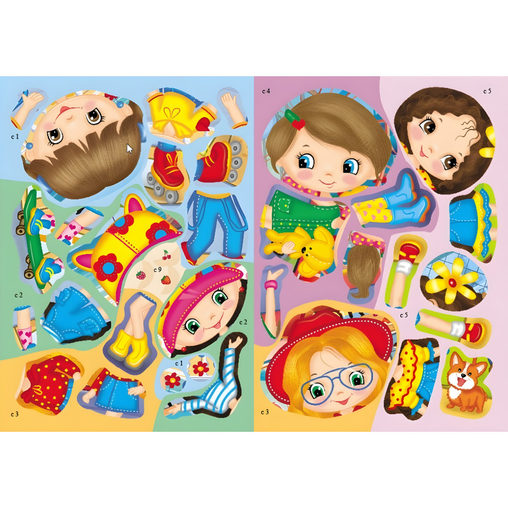 Дівчатка-подружки. Розвивальні наліпки з логічними завданнями. 68 наліпок на 2-х аркушах