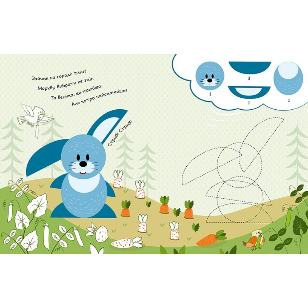 Справжній книжковий конструктор! Роздивляємося картинки, збираємо з наліпок фрази об'єкти і читаємо віршики! Кожний об'єкт складається з кількох геометричних фігур.